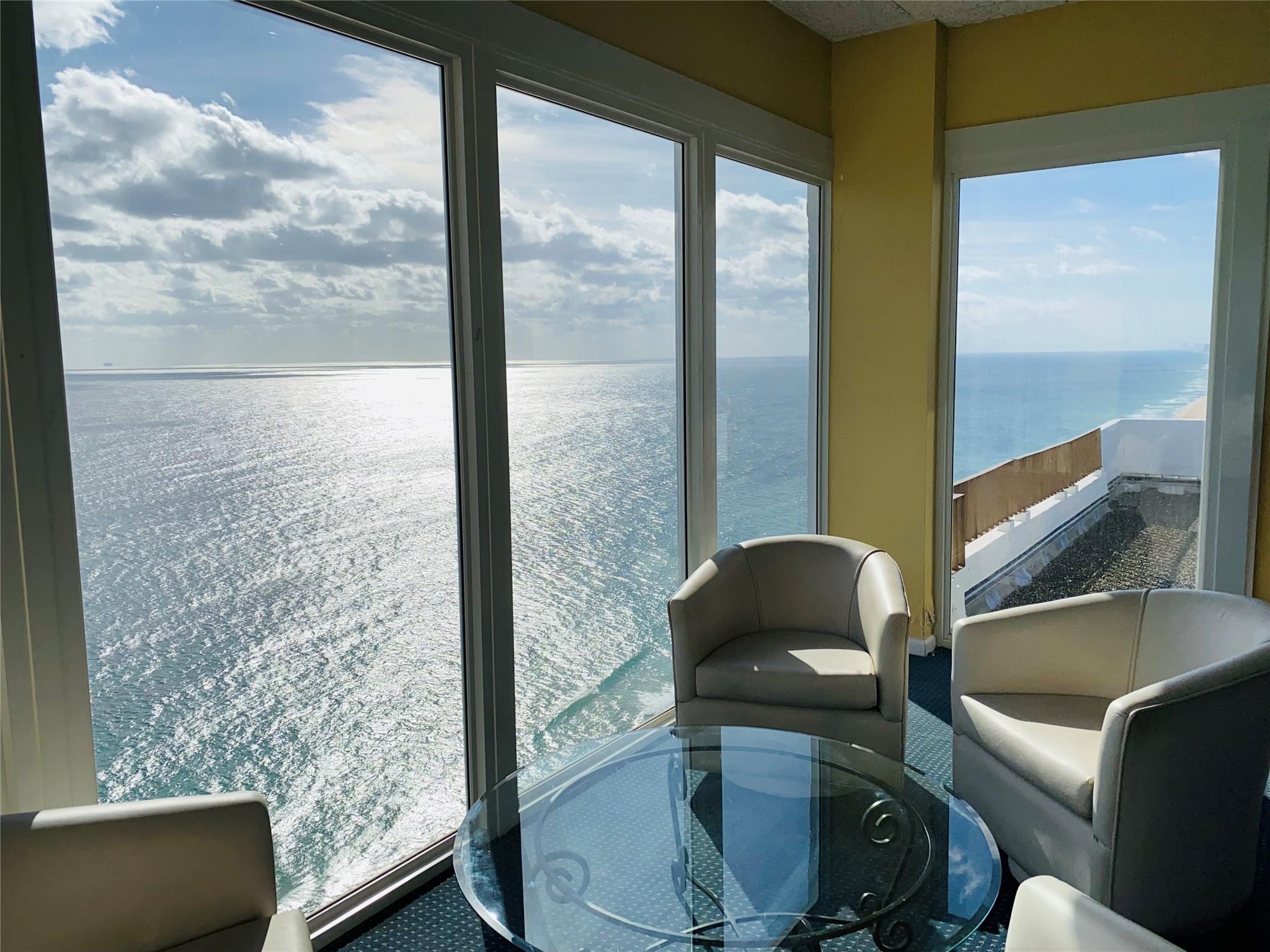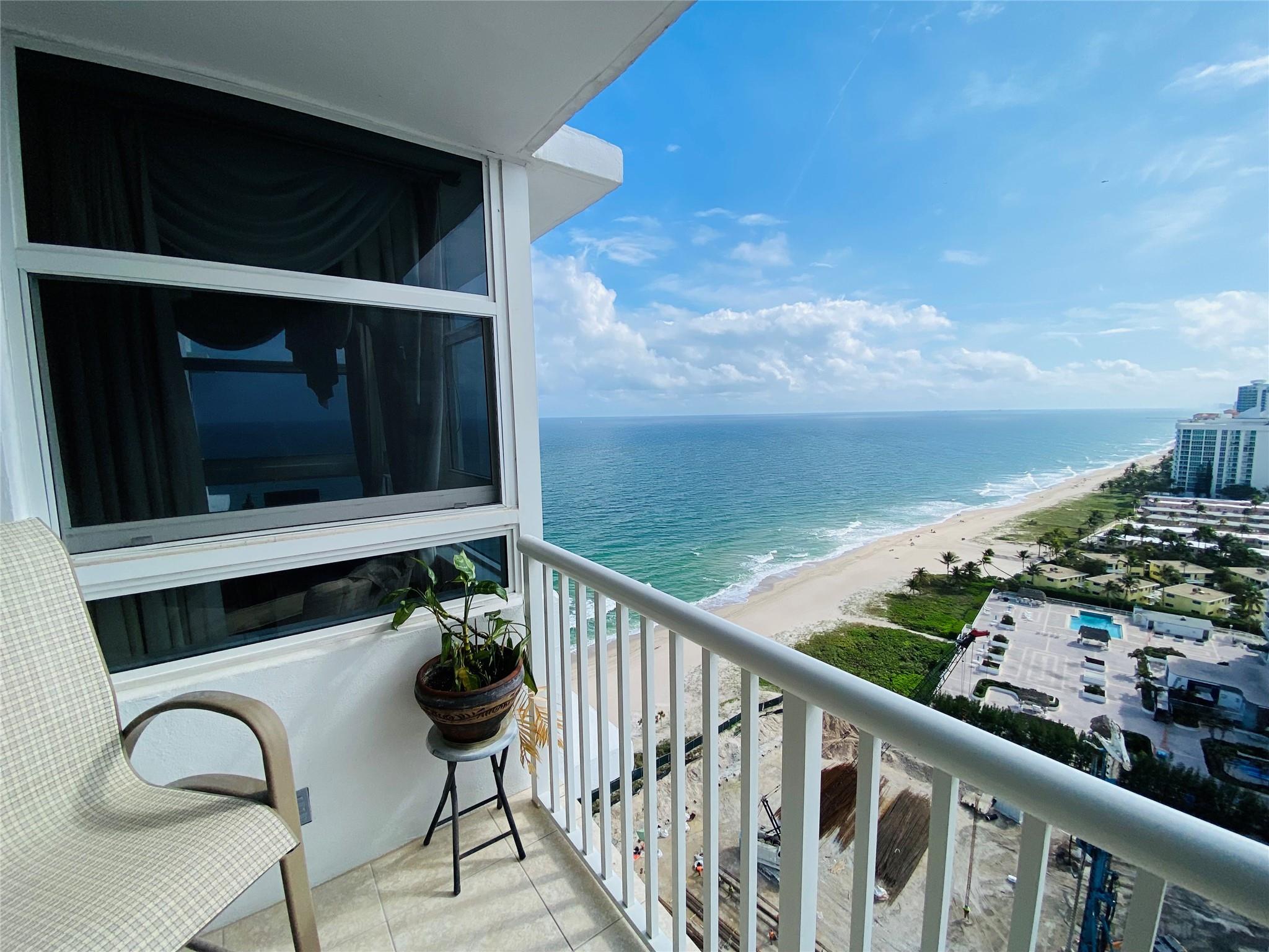 BREATHTAKING OCEAN VIEW from this FURNISHED 2 beds /2 baths 23rd FLOOR unit! Right on the sand! The bright and SPACIOUS primary bedroom with its South-East Ocean view offers a cute office/relax area and a huge walk-in closet. STORAGE throughout the property with WASHER and DRYER in the unit. Floor to ceiling IMPACT WINDOWS everywhere with sliding glass door leading to a large open balcony. This 1,600 sqft unit features also a generously sized second bedroom. This well manage building offers many amenities : a heated ocean front pool with spa, tennis court, fitness center with sauna, library, bike storage, secured lobby and garage! You will also be able to benefit from a SKY LOUNGE wit panoramic views of the ocean on the 28th floor! Cable / internet included in the maintenance fee. NO PETS