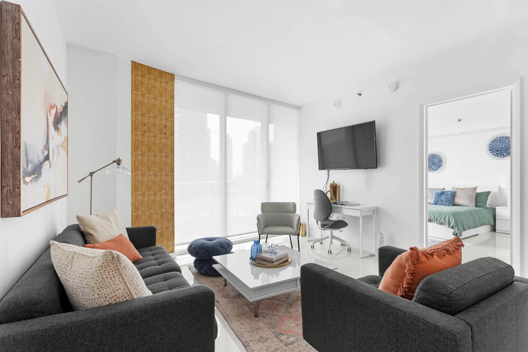 Great INCOME PRODUCING PROPERTY opportunity to invest in the beautiful Icon Brickell only 5 minutes from the BEACH. Beautiful 2 Bedroom and 1 Bathroom Condo with an open living concept for dining and entertaining. The building allows short-term rentals GREAT AIRBNB that is booked until May. Beautiful amenities featuring a pool, spa, and gym. Enjoy a luxury experience in Miami's hottest spot that is walking distance to everything Brickell has to offer, restaurants, bars, shopping at Brickell City Centre and only a 10-15 minute drive to Miami International Airport. Condo being sold Furnished for immediate income.