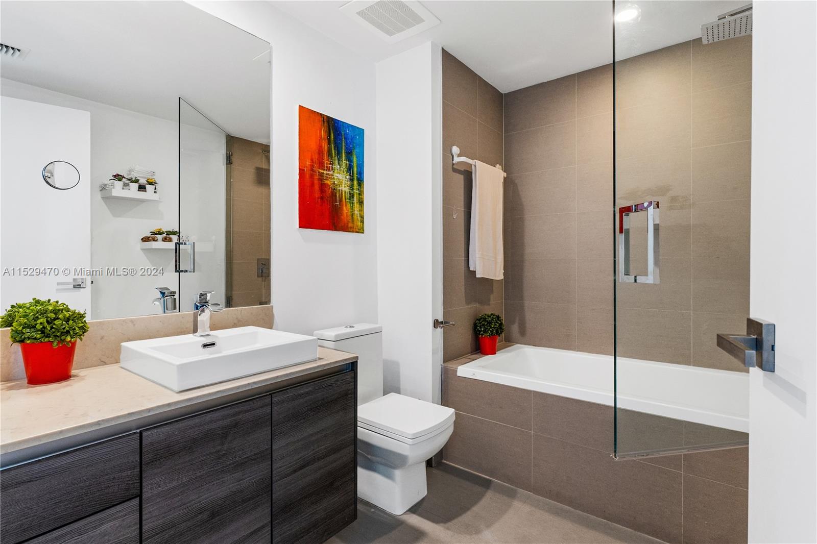 This unique 2 story home is a house in the sky and priced to sell, offers 3 bedrooms each with ensuite bathrooms plus and extra half bathroom. The kitchen features high end Italian cabinetry, quartz countertops, Bosch appliances, custom made closets, electric window treatments and 2 large balconies with dynamic city views. The Bond is an ultra luxury residence w/resort like pool, cabanas, fire pit, 24 hour concierge, fitness center, clubhouse, kids play room & more. Unit is easy to show, please allow a 24 hours notice.