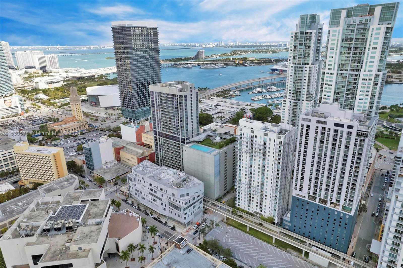 A beautiful, fully furnished, turnkey 2-bedroom unit located in the heart of Downtown Miami. It boasts modern decor and stunning views of downtown Miami. NO rental restrictions!!! Great opportunity for investors. The location is excellent, just one block from Bayfront Park and directly across from the First Street Metromover station. The building is a high-rise with fantastic amenities, including a beautiful swimming pool, gym, restaurant, bars, rooftop residence lounge, etc. Valet parking and 24/7 security. Come to see it now!