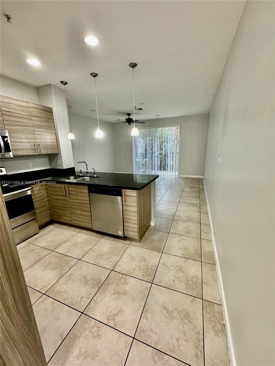 Welcome families and Investors to the desirable Calabria II neighborhood!!!!!! This complex with a bright and open concept design with high ceilings, impact windows, and stainless steel appliances . The main floor features tile floors, a modern kitchen and plenty of space for dining and living , a half bathroom is located on the main floor. Second floor with master bedroom with spacious bathroom and walking closet. Second bedroom includes bathroom and closet . One-car garage provides plenty of storage space. Complex includes common areas offering a pool, playground, and a common patio area. With all of these amenities and features, this home is perfect for anyone looking for modern convenience and comfort. Also Can be rented immediately don't miss your chance!