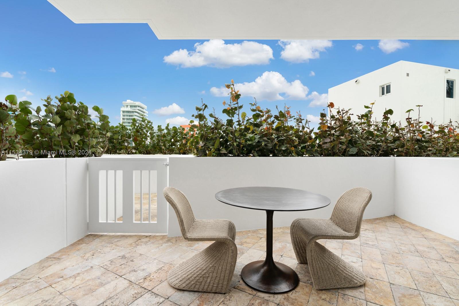Spacious studio featuring a separate bedroom from the living and dining areas, transforming it into a 1-bedroom 1-bathroom apartment. Enjoy a large terrace with garden views and direct access to the pool and beach. The Italian kitchen is equipped with stainless steel Miele appliances, a Subzero refrigerator, granite countertops, and marble floors. Continuum North Tower offers resort-style living with luxury amenities, including 24-hour security, valet parking, full-time concierge service, 2 heated lagoon pools, and a spa. Indulge in beachside services from the Patio Restaurant, take advantage of 3 pro clay tennis courts, and access a 23,000 SF sporting club & spa with an infinity lap pool and much more.
