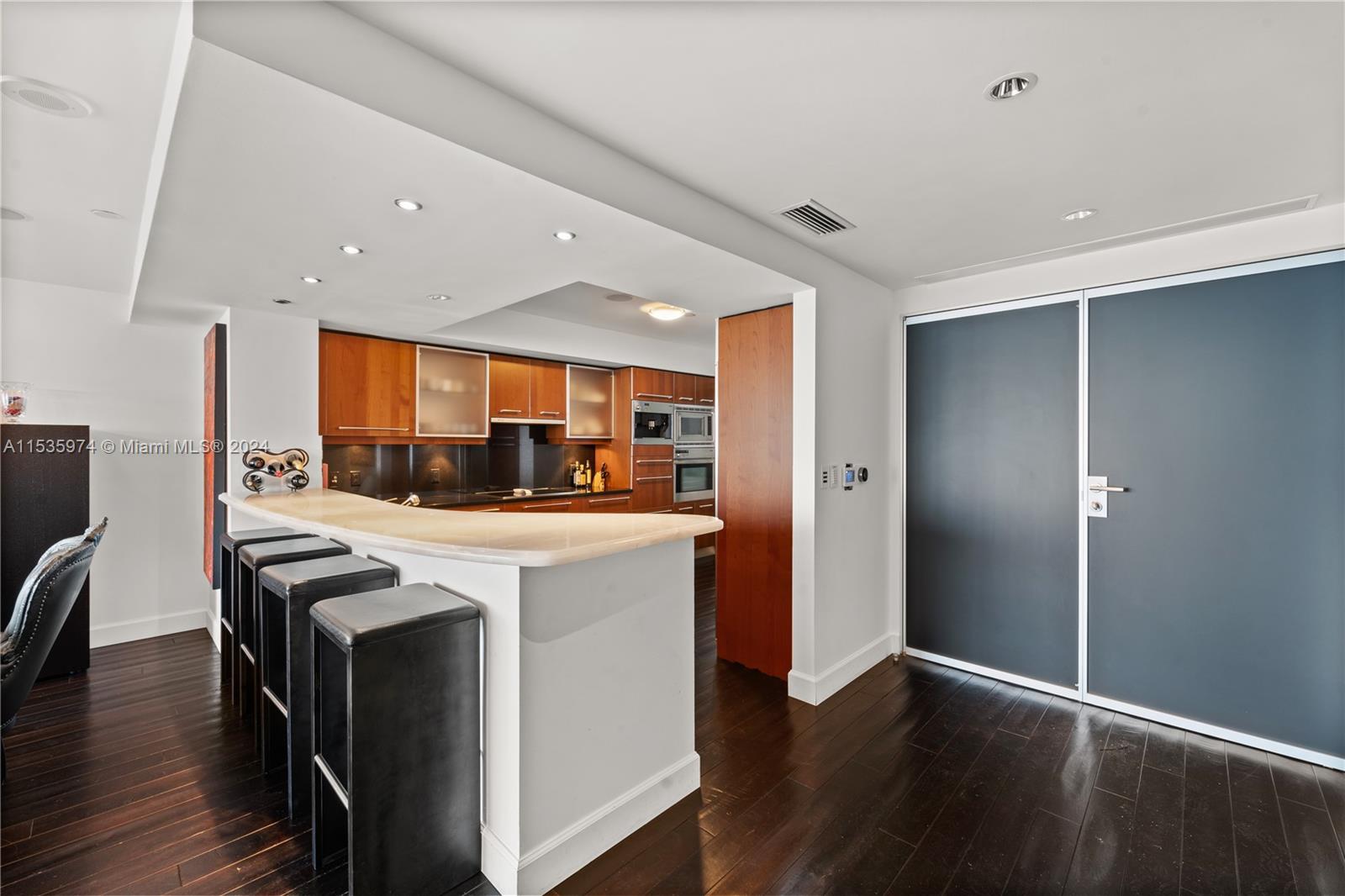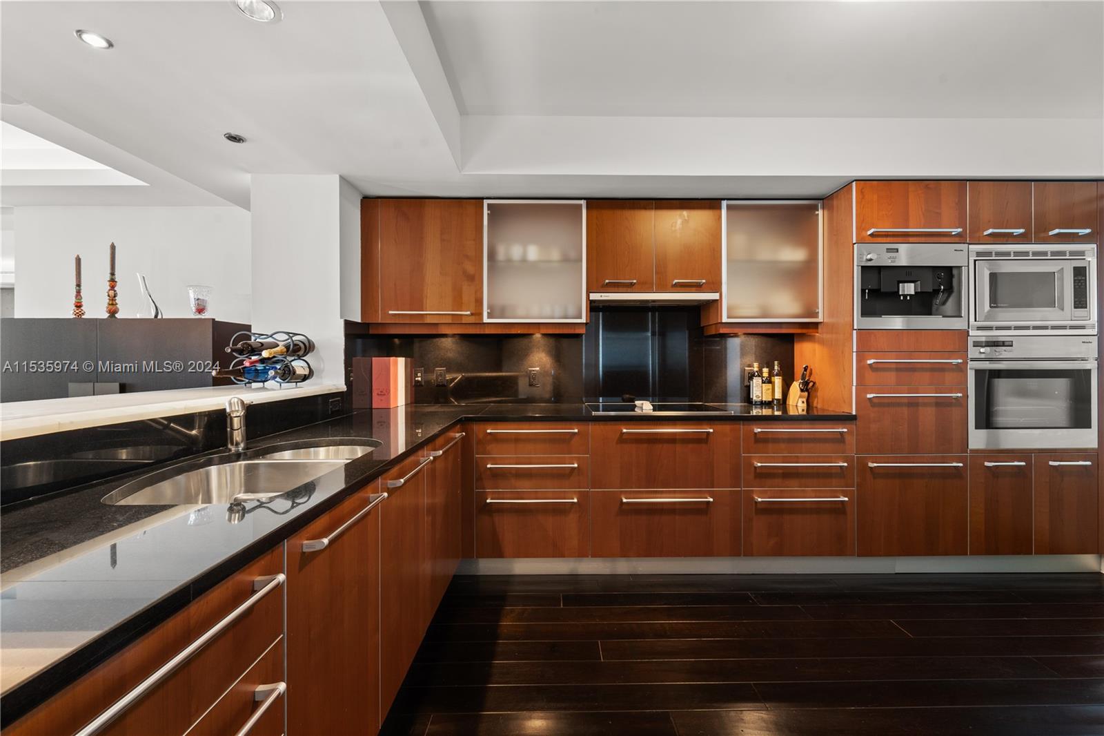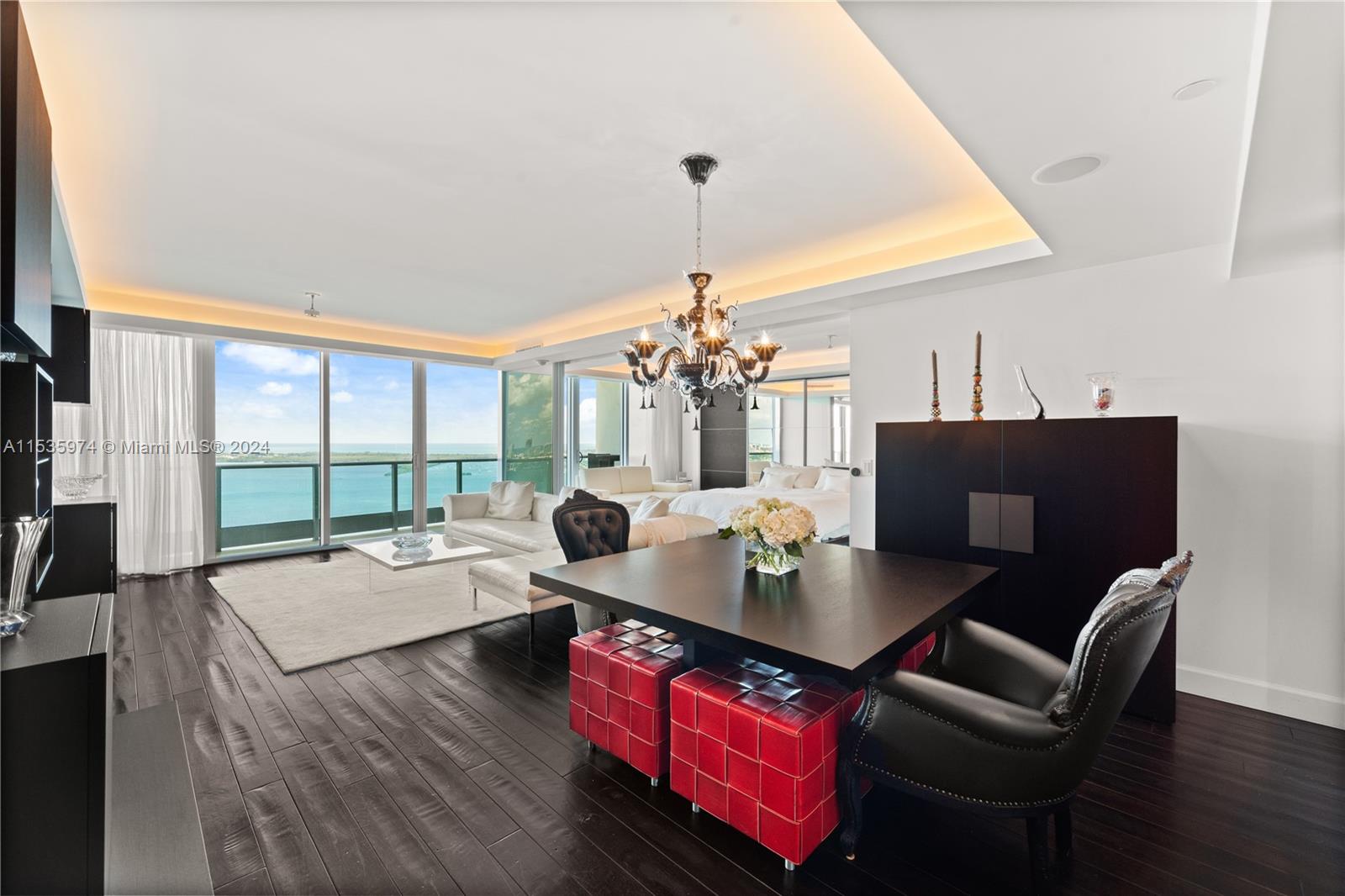 Priced to sell! Tessi Garcia designed turnkey 2/Bed+Den 3/Bath with breathtaking water views located right on the bay in the heart of Brickell. This unit features dark wood floors throughout, floor-to-ceiling high impact-resistant windows, 10 foot ceilings, master bedroom with illuminated king size bed and sliding glass door system to keep the bedroom exposed or private, built in closets, glass-enclosed shower in master bath and jacuzzi with marble floors. Kitchen with high-end appliances by Sub-Zero & Miele, Italian wood cabinetry and cappuccino maker, W/D. Lutron lighting system, remote control Hunter Douglas shades and more. 1 assigned parking space right off the lobby, 1 valet space and 1 storage cage. Full service amenity style building.