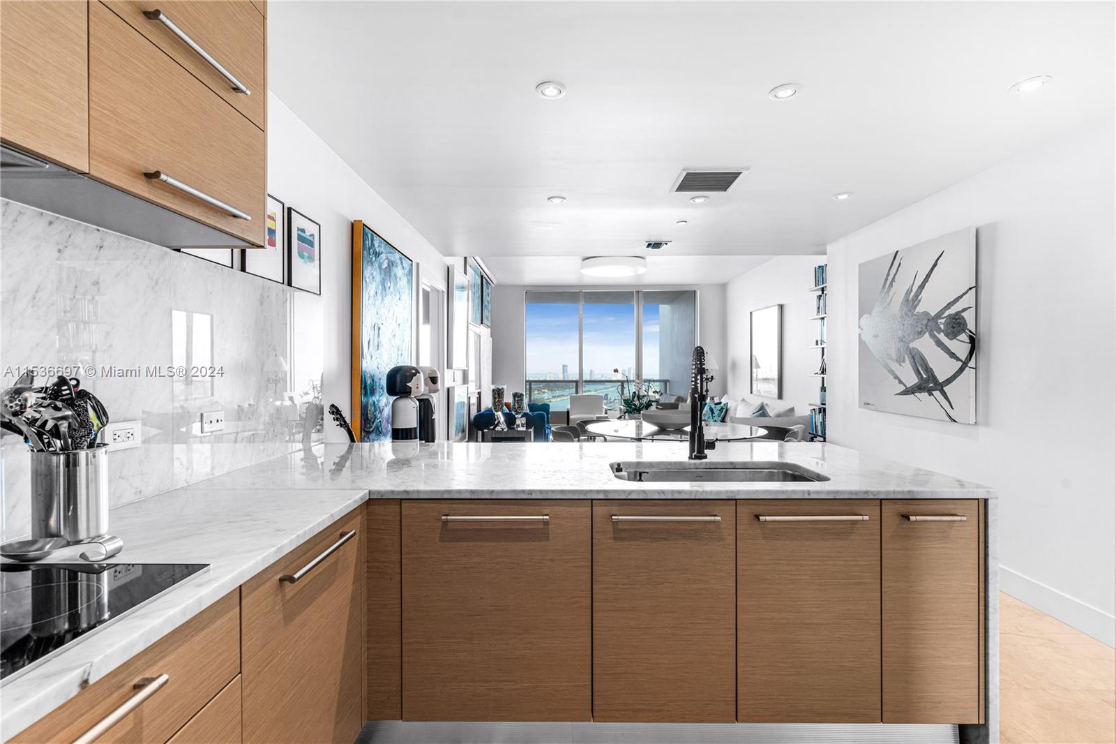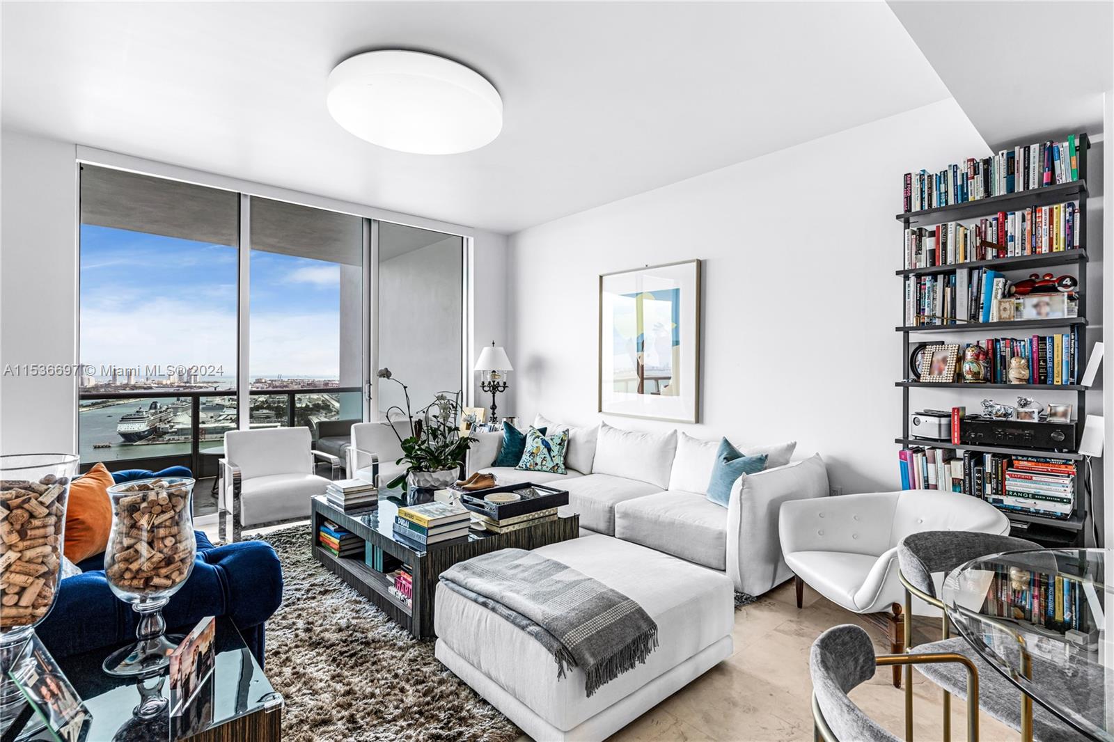Stunning 3 bedrooms / 3 bathrooms apartment with panoramic views of Port of Miami, downtown, and Miami Beach. Enjoy the luxury living at 900 Biscayne. Apartment with high end finishes, private elevator entrance, high ceilings and marble floors throughout. The European kitchen boasts top-of-the-line Sub-Zero and Miele appliances. Ceiling lamps are not included. Ample storage with large closets, plus a convenient laundry room. Indulge in the building's amenities, including a well-equipped gym, inviting pools, kid's rooms, and elegant lounges. Live in style with this spcious and sophisticated residence.