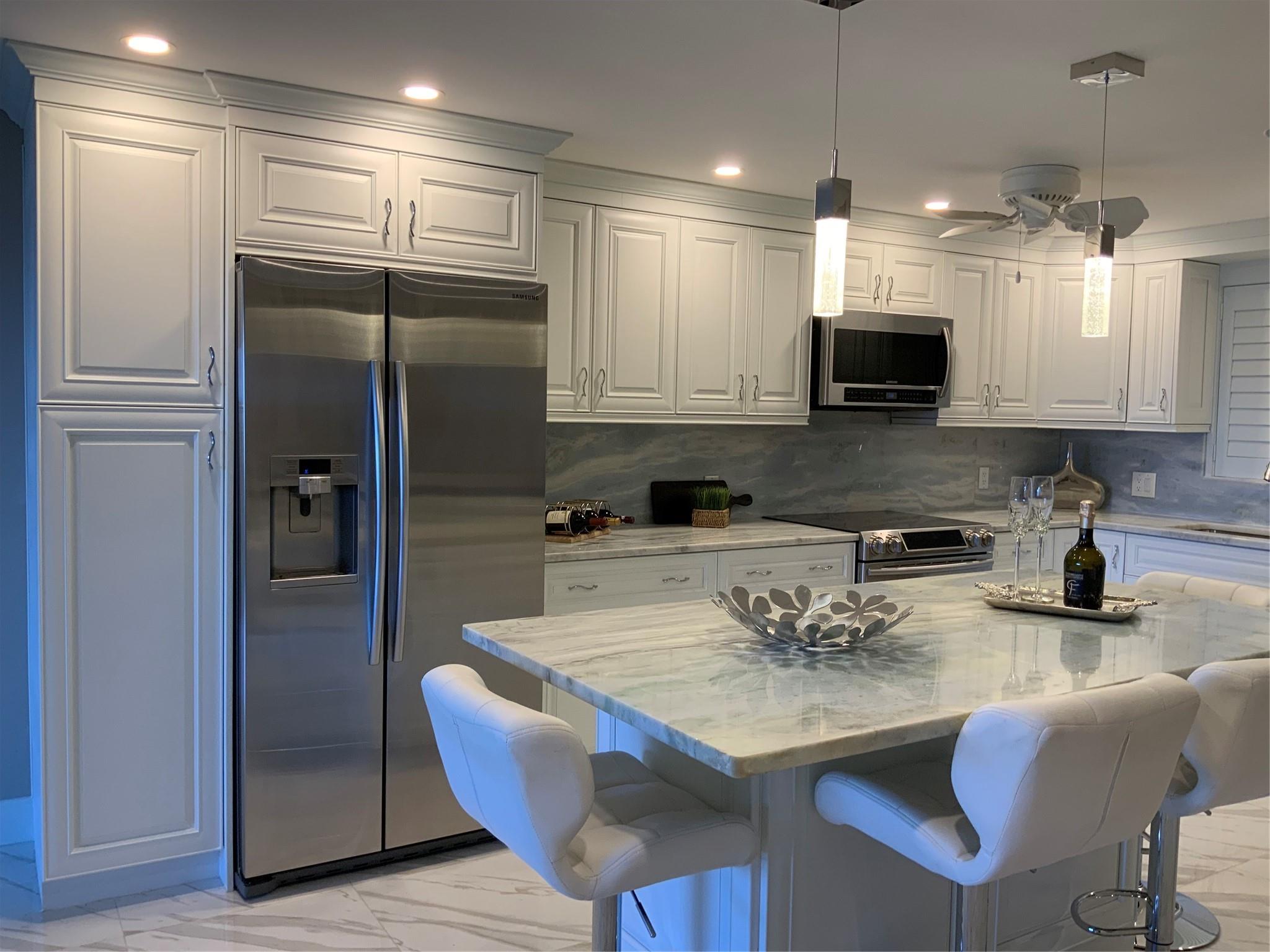 Directly on the Sand! Crane Crest is a newly renovated & currently being painted oceanfront building. Immaculate & elegant 2/2 with unobstructed ocean views from the living room & master bedroom! Rarely available NE corner unit gutted to the studs w/ all new electrical & plumbing. Impact windows & doors with picture windows for direct ocean views. High-end finishes throughout. Master has built-in desk flanked by cabinetry for clothes and storage. Walk-in closet w/ organizers. Guest bedroom with Murphy bed. White wood kitchen cabinets w/quartzite tops and backsplash. SS appliances. Large center island w/ seating perfect for entertaining. Porcelain tile throughout. Both baths with quartzite tops, custom cabinetry. Private beach access. One covered parking spot w/guest parking. Secured bldg.