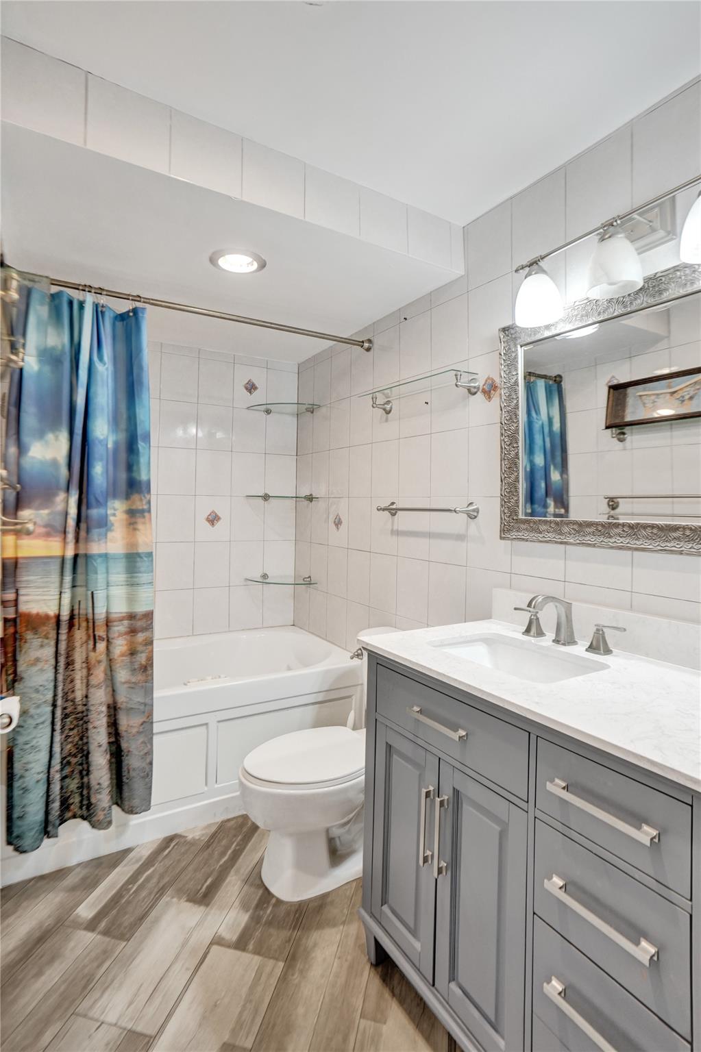 Welcome to your dream beachfront escape! This beautiful 2-bedroom, 2-bathroom condo offers modern coastal living at its finest. Featuring partial ocean views, brand-new waterproof vinyl floors, kitchen with granite countertops, two private balconies perfect for enjoying the ocean breeze. All impact windows and doors ensure safety and durability. Swimming pool, mini golf, direct beach access and more. Located in a prime location in one of South Florida's renowned beaches.