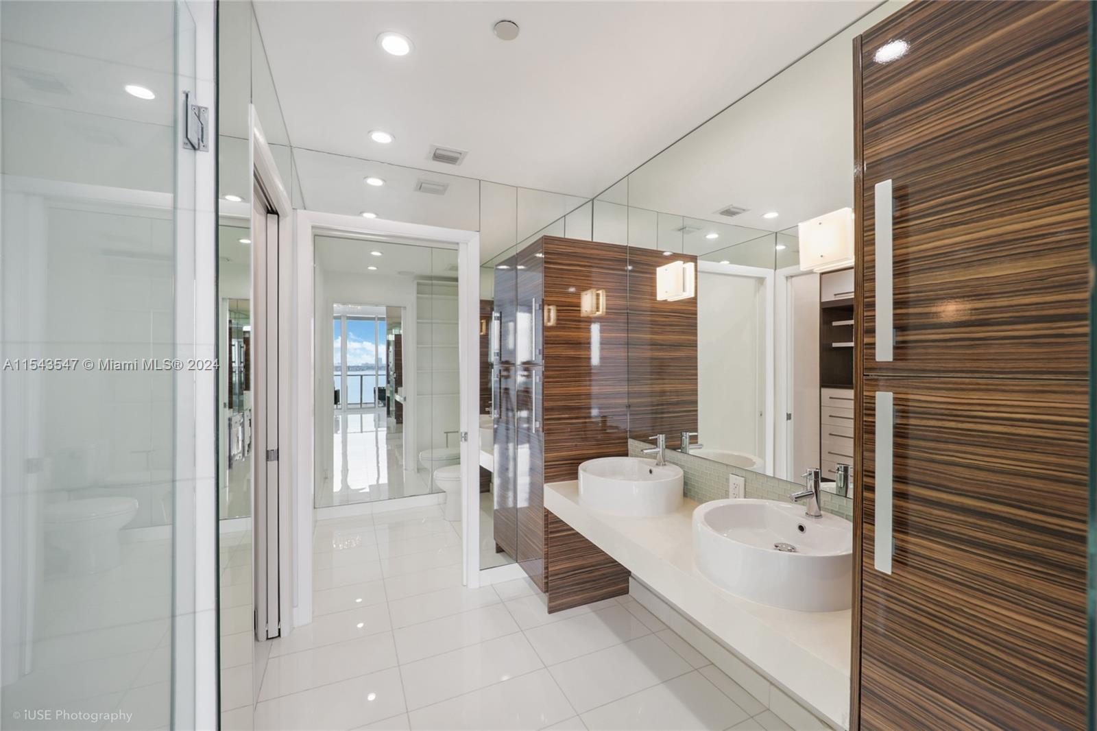 Experience unparalleled luxury living in this Miami gem! Marvel at the breathtaking bay view from your private balcony, with additional sights of South Beach & the Venetian Isles. Floor-to-ceiling windows with custom mirrored walls for panoramic water views. The oversized primary bedroom boasts dual modernized closets, electric blinds, & ensuite bathroom. Elevator access to your private foyer adds exclusivity. Custom lighting fixtures, Sub Zero/Wolf appliances, & a Tesla EV charger in your dedicated parking space complete this opulent package. Indulge in a resort-like lifestyle with amazing amenities, including two pools, hot tub, cabanas with convenient towel service. Fitness & spa, kids' room, library, club room, private conference rooms, & more.