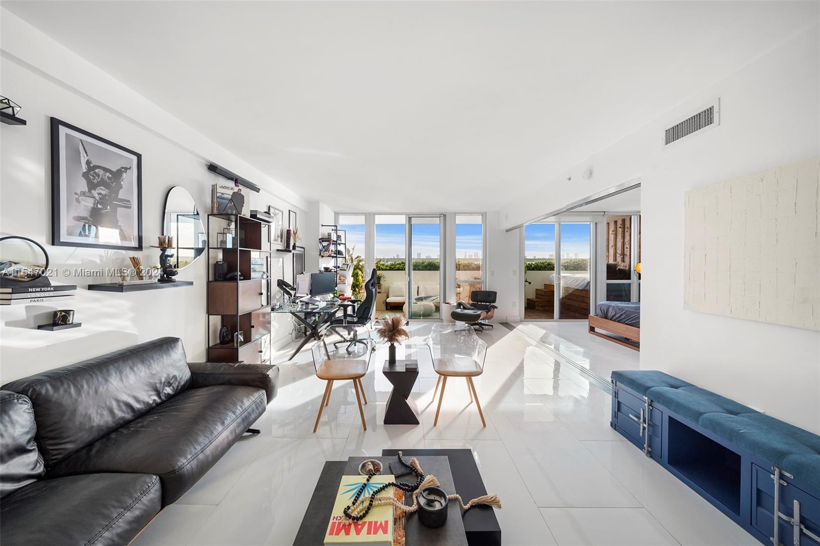 One-of-a-kind 1 bedroom + den (converted to a second bedroom), with an oversized terrace overlooking the Bay and the Miami skyline. Meticulously maintained, and featuring many updates including 3 panel tinted glass wall for maximum flexibility of space, floor-to-ceiling cabinetry in closet, updated kitchen, large yet charming balcony perfect for watching the sunset. Bentley Bay is a full service luxury building offering its residents an array of services and amenities (including pool deck and state of the art gym), across the street from the new Canopy Park (with kids' play area and dog park), and very close to the Ocean/ beach, Whole Foods, and a multitude of restaurants and coffee shops. Tenant occupied until June 1.