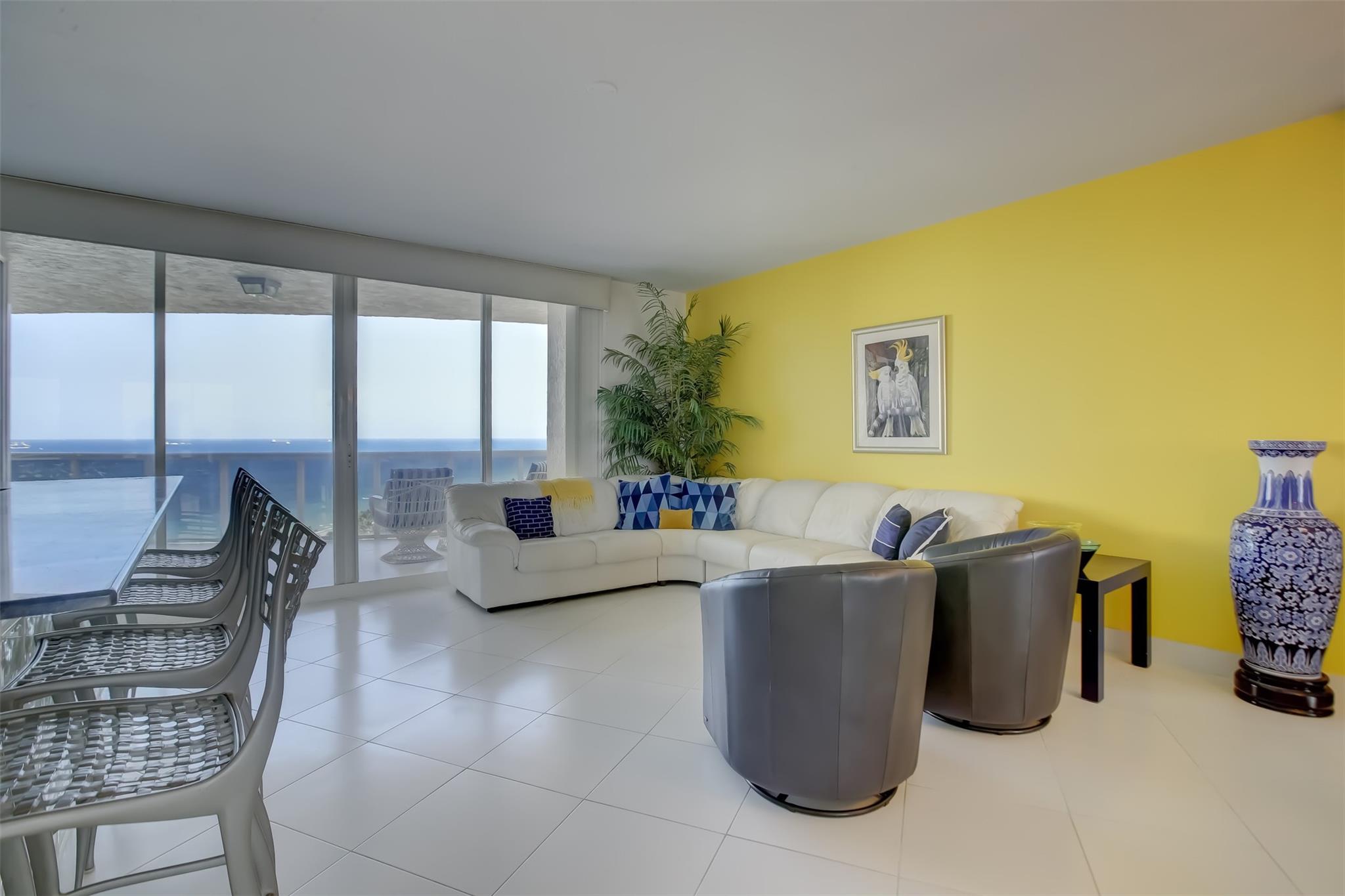 SOUTHEAST EXPOSURE .. ALL DAY SUN .. currently 2 bedrooms w a den which can be 3rd bedroom.. GORGEOUS VIEWS of coastline, Ocean and city . Two terraces .. Resort-like complex on 10 oceanfront acres w 2 pools, 2 clay tennis courts (Har-Tru), poolside cafe, spas, private beach pavilion w tiki huts, bbq, cabanas & beach attendant. PARK CAR YOURSELF IN GARAGE , valet for guests, concierge , pet park ..NOTE: 2 pets, any size, Ok E-A-S-Y TO SHOW