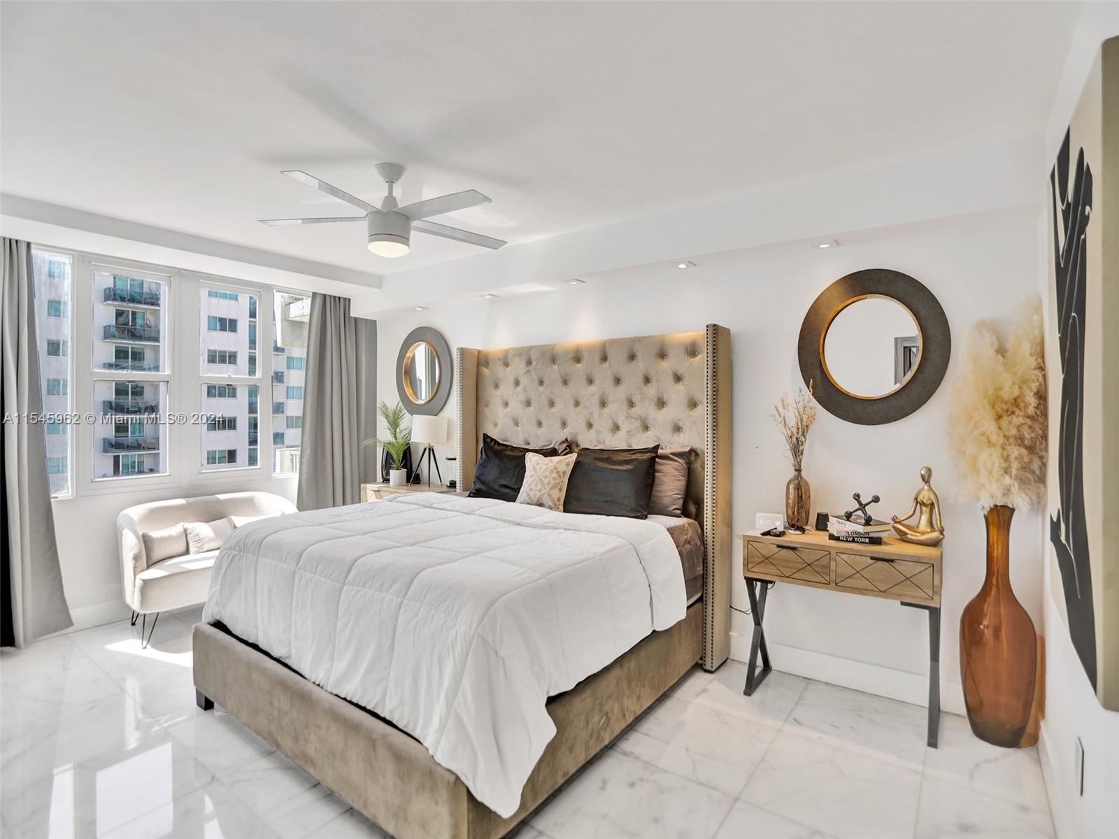 This stunning home is a rare gem and won't remain available long! It can be sold furnished or unfurnished and boasts a spectacular bay view enhanced by modern contemporary decor. It is ideal for singles, families, and investors alike (Available for immediate short-term rentals). It also features a remodeled kitchen w/Quartz countertop, custom cabinetry, marble floors, custom lighting & spacious closets (Walk-in Closet in the Primary Bedroom). Both bathrooms have wall-to-wall marble tile flooring & Quartz countertops. The Community has a security guard, a large swimming pool, and a newly renovated gym. The location is unbeatable, just minutes from the beach, shopping, and restaurants. Commuting is a breeze, with downtown Miami, South Beach, and Bal Harbour all just 15 minutes away.