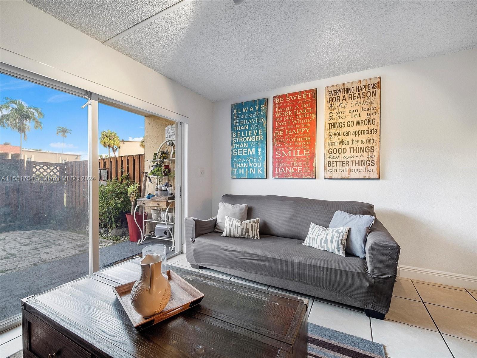 Highly desired corner unit featuring a PRIVATE BACKYARD. This spacious 2-bedroom, 2-bathroom condo offers an oversized yard for outdoor enjoyment. Upgraded kitchen with marble countertops and stainless steel appliances. Ceramic tiled floors throughout. The spacious master bedroom features modern bathrooms. Additional features include an in-unit washer and dryer, walk-in closets, and more. The community is exceptional, offering 3 pools, tennis courts, clubhouse, and gym. Conveniently situated in Doral, close to the new Doral Downtown Development, top-rated schools within walking distance, and easy access to the Palmetto Expressway, hospitals, banks, and shopping facilities.