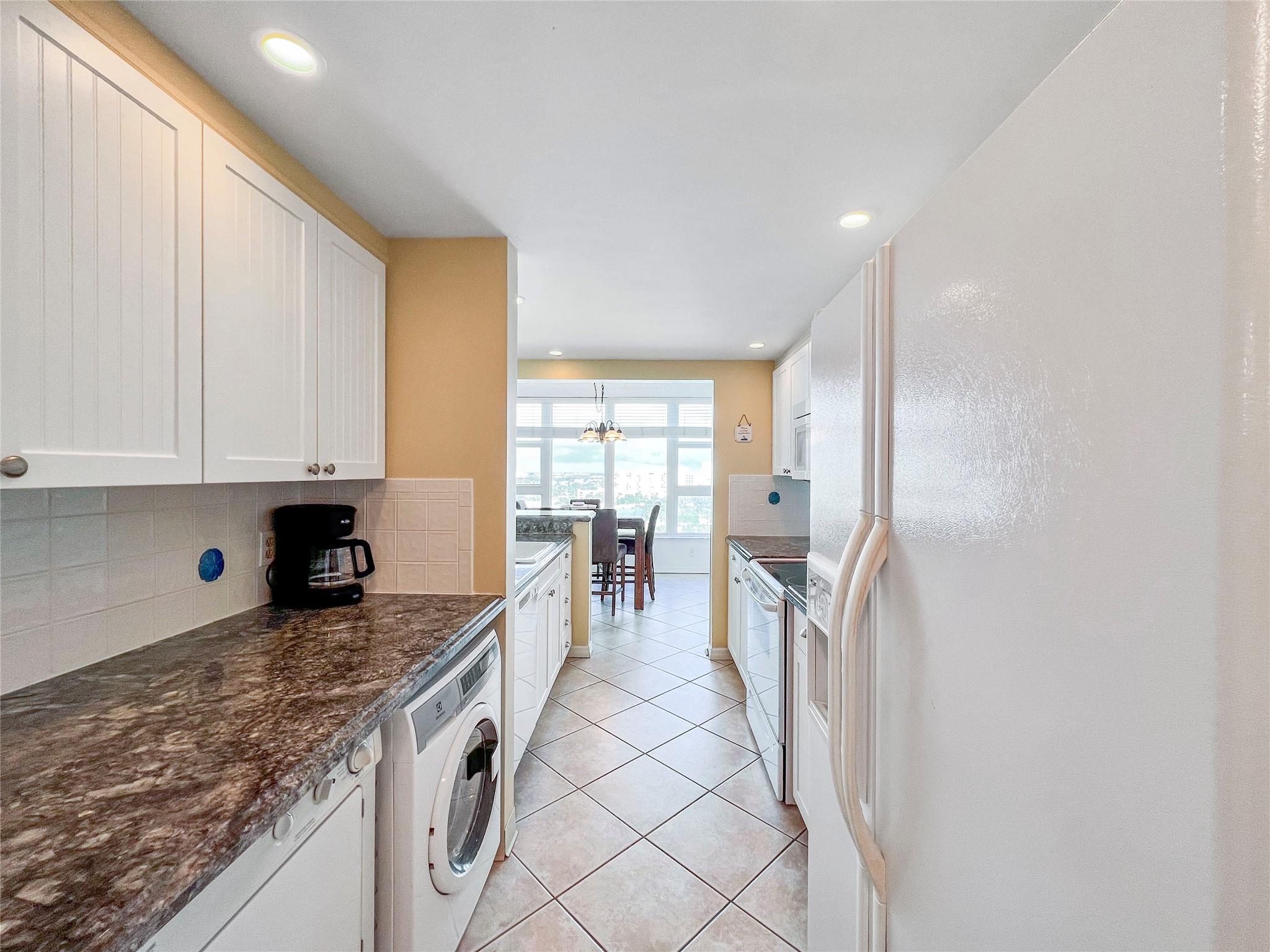 ** ENJOY RESORT STYLE LIVING ** 2 bedroom 2 bath unit with new hurricane impact windows, granite counter tops, washer/dryer inside,and beautiful city views, side ocean view. Building located on the beach /ocean side feature 24 hrs security, exercise room, extra storage, sauna, cover parking and largest pool deck in LBS. Use of Aquazul tennis court.