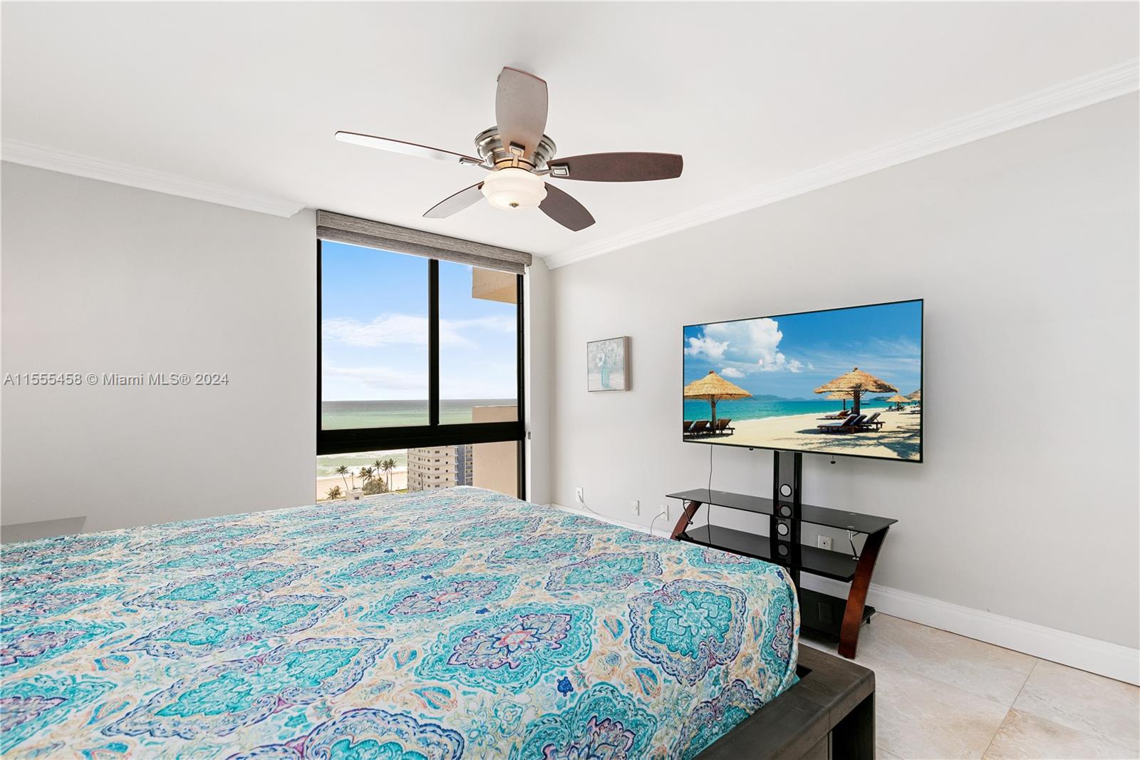 Unobstracted ocean view as soon as you step in. Spacious unit is fully renovated with floor to ceiling windows. Brand new floor to ceiling windows and balcony door. Master bedroom has two persons jet shower and separate toilet. The second bedroom has a Murphy Bed can be used as an office. There is a jacuzzi in the second bathroom. Plenty of closets and built -ins. Open kitchen with high- end appliances. Steps from the beach located on intracoastal combining the best of both worlds: relaxing by the pool on intracoastal or on the beach. Close to FLL airport, Gulfstream, Aventura Mall, restaurants and Hollywood boardwalk. New Publix is being built few blocks away. Furniture and essential kitchenware are included so all you need is your toothbrush. Schedule your showing today.