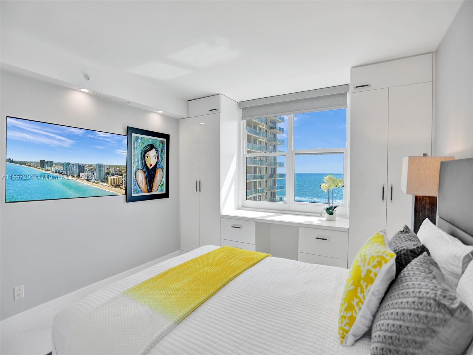 This renovated residence offers stunning, direct ocean views that are truly breathtaking. The open kitchen boasts high-end smart appliances, perfect for modern living. Luxurious touches include remodeled bathrooms and custom closets, elevating the comfort and convenience of the space. The living area features a stretch ceiling, creating an expansive and airy atmosphere reminiscent of loft ceilings. Whether you're seeking a primary residence or a vacation beachfront escape, this home offers the perfect blend of luxury and functionality. The Wave amenities designed to your lifestyle. Resort-style pool area, GYM, beach services, poolside restaurant. Prime location near FLL, malls and the Hollywood Boardwalk ensures convenient access to entertainment, shopping, and dining options.
