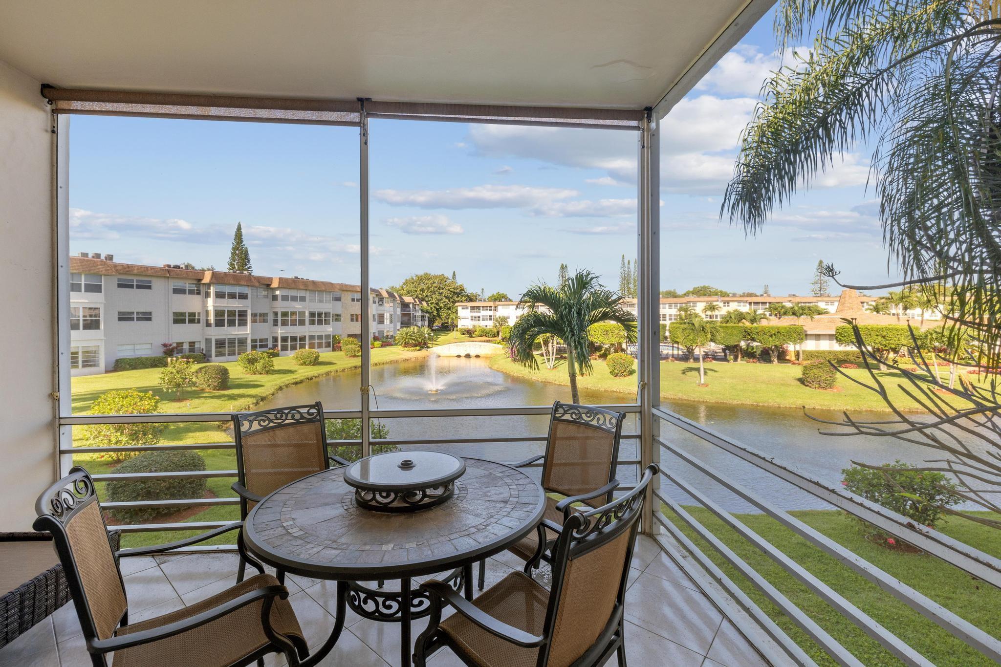 This bright and spacious 2/2 unit has beautiful water views of the fountain and luscious garden views from the master bedroom and screened patio. BRAND NEW AC from 12/2023. This is an active 55+ community. Sold fully FURNISHED. Community has clubhouse, pool, BBQ and picnic area, shuffleboard, billiards, petanque, party/card room, library, exercise room, workshop, and many activities for residents. Lots to enjoy, yet peaceful and serene! Please note you can rent after 2 years of ownership.