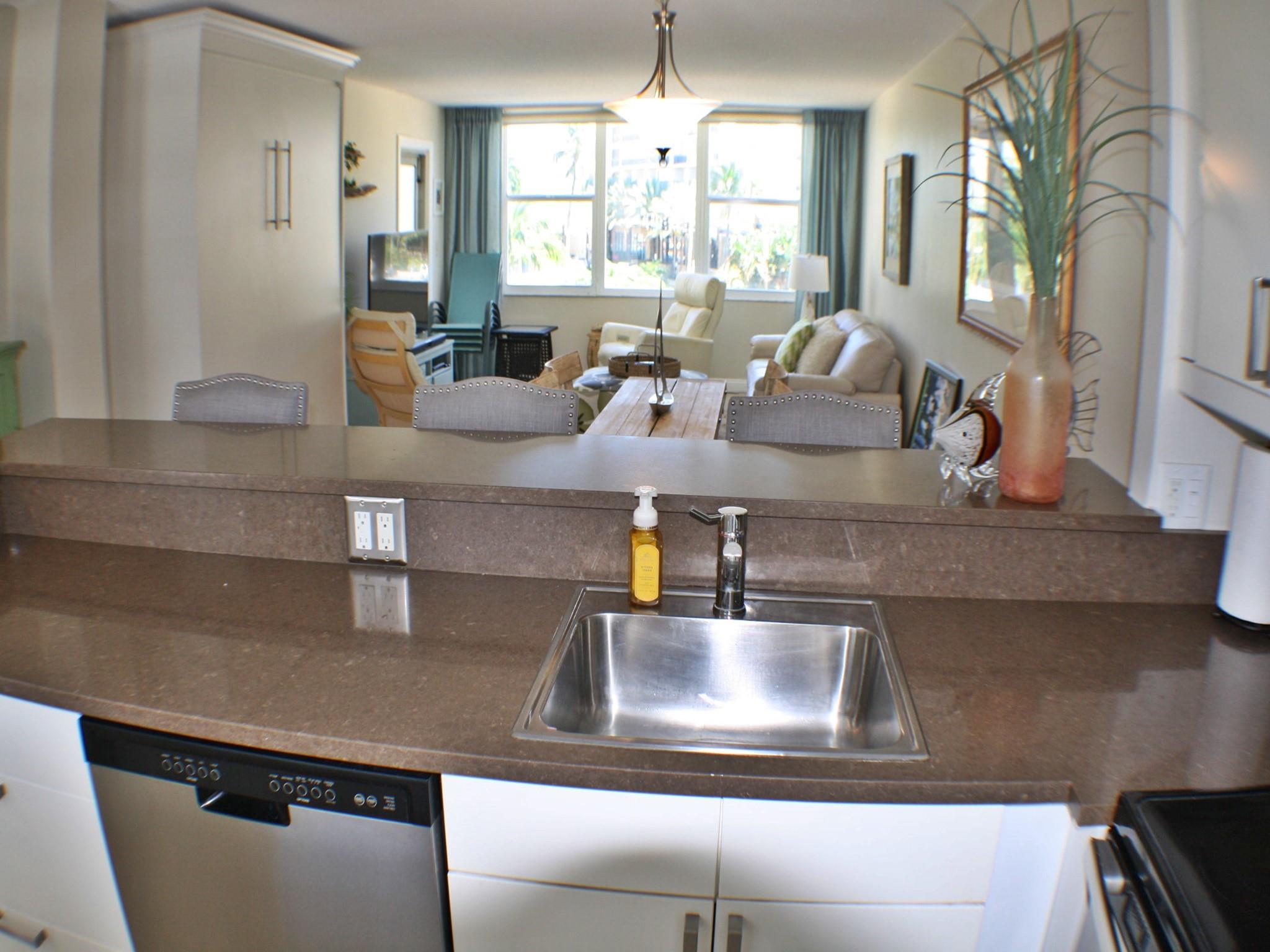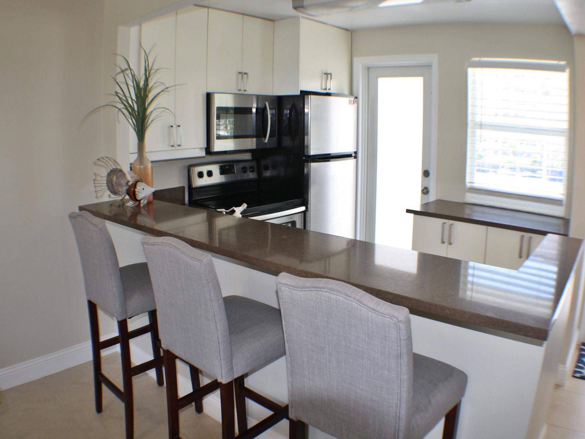This low floor unit has been updated to the highest level, it’s move in ready. Stunning open plan kitchen with plenty of white contemporary cabinets, quartz counters,stainless steel appliances, the latest design in breakfast bar with bar seating. Ceramic floor tiles, modern Murphy bed in the living area for those extra house guest! Freshly painted with smooth matt finished walls, beautiful views of the heated pool and gardens with Impact windows throughout. Renovated bathroom with pretty new vanity and plenty of extra storage throughout this beach home which also boasts covered parking. Granada House is coming to the end of extensive renovations and is located right in the heart of all Pompano has to offer, walking distance to the beach, Pier, shops and now many fine restaurants and bars.