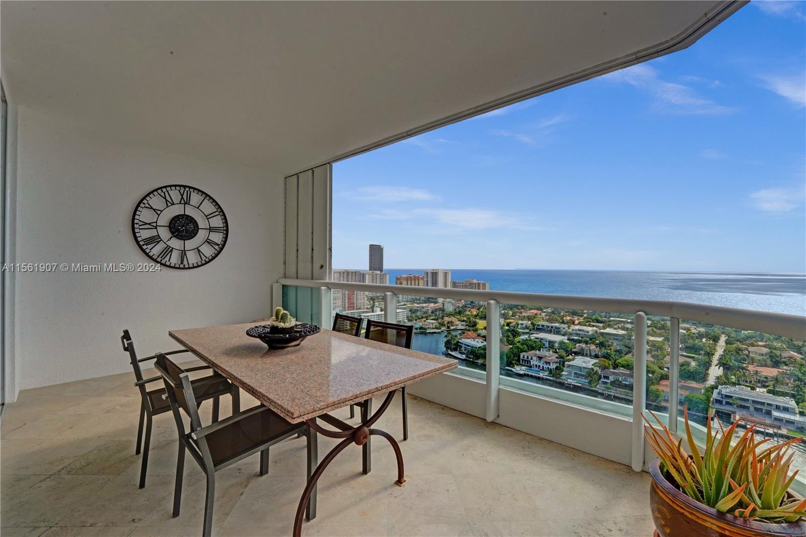 One of the best floorplans in Aventura! Direct Ocean View! This flow-thru apartment has panoramic views of the Intracoastal, and the ocean. Bright & spacious. 3 bedrooms & 3.5 baths. Updated Eat-in kitchen and a full-size laundry room. Large master bedroom. Two balconies. 2 garage parking spaces. Recently renovated lobby with 24-hour security and valet. Great amenities included in the maintenance: 25,000 sf spa & fitness center with an outdoor cafe, 3 pools, tennis courts, BBQ area & kids’ playground. Walking distance to restaurants and shops.