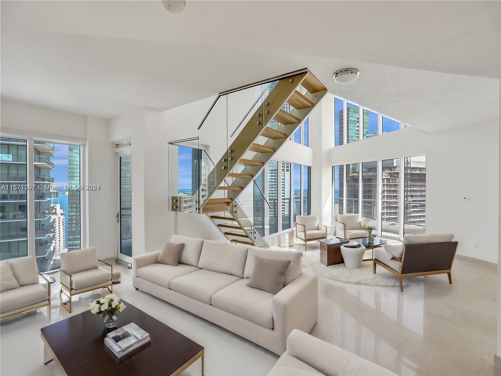 RARELY available (not since 2022) corner 00 unit in Infinity!! Floating 30 floors in the sky, 2-story duplex with jaw-dropping 20ft ceilings, 270* views of the bay, ocean, & city skyline. Floor-to-ceiling windows create an expansive ambiance rarely seen ANYWHERE in Miami. 3 balconies for you to choose to watch luscious sunrises & sunsets? The ONLY Mezzanine / Loft / Office adds 100 sft makes this the largest unit in Infinity! Ascend the floating staircase to discover 2 en-suite BRs, each with a private balcony. On the first floor, a 3rd en-suite BR awaits! First class 5-star resort-like amenities with 24-hour security, rooftop sun deck, private bar, jacuzzi, fitness center & spa. Walking distance to shopping, Brickell City Center, financial district, grocery, public transportation.