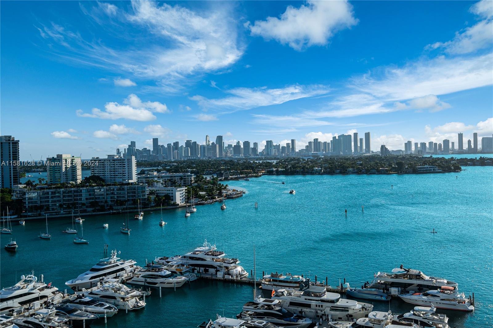 Highly desirable upper floor 2 bed / 2 bath residence at Sunset Harbour North. Enjoy direct bay views, beautiful sunsets, and a postcard-perfect Miami skyline from all rooms. The 12-line is one of the most spacious two-bedroom layouts in the building. Original but clean condition, and ideal for renovation and upgrading. Full service building, gym, valet and 1 deeded parking space, bay front pool, in addition exclusive access to Sunset Harbour Yacht Club pool, private marina, walk to Lincoln Road, South Beach, moments to downtown Miami. Easy to show and priced right!