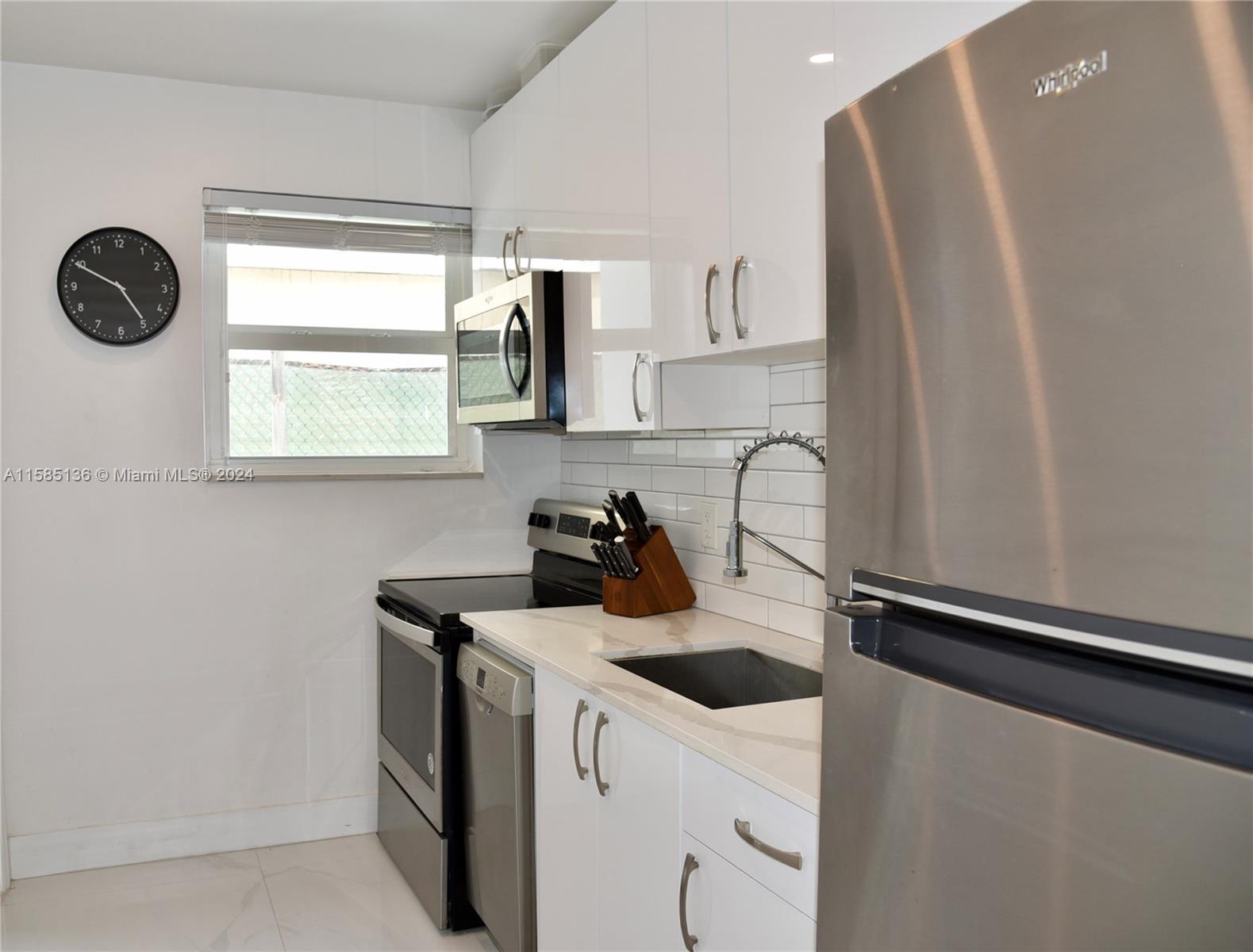 This fully renovated corner one-bedroom apartment boasts top-notch finishes and is just steps away from the ocean. Highlights include soundproofed walls, new high-quality impact windows, and beautifully refinished Florida pine hardwood floors. The apartment is equipped with a dual-zone split AC system. Custom blinds adorn the windows, providing both style and functionality. The apartment features a windowed bath and a spacious kitchen with stainless steel appliances, including a Bosch dishwasher. Marble countertops and white cabinets create a sleek space. The apartment feels spacious thanks to its corner location and thoughtfully designed floor plan. Plus, you'll find ample storage with two large walk-in closets. Nestled within a charming and meticulously maintained Art Deco property.