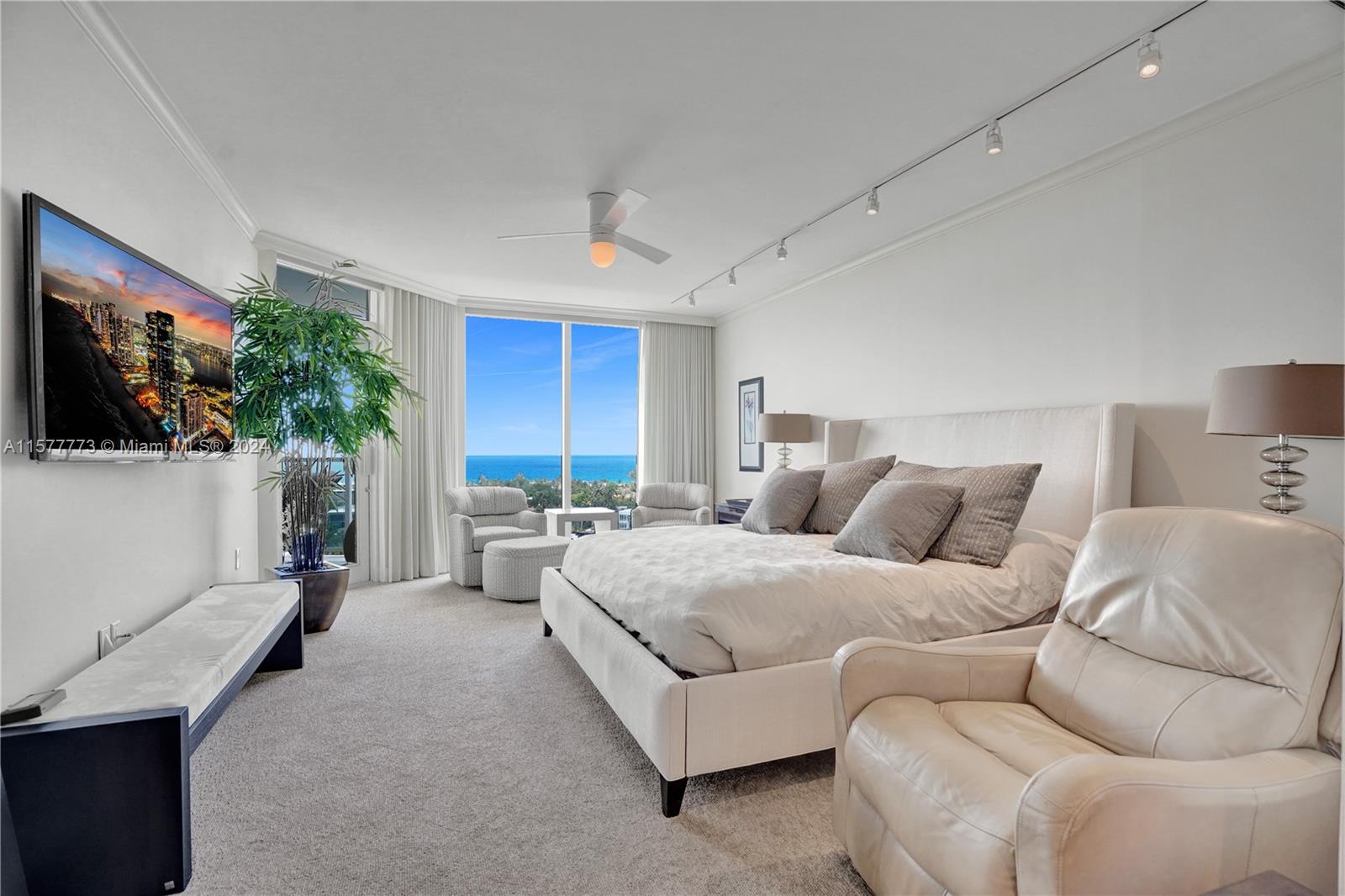 Elegant, bright and light filled, this magnificent unit has direct unobstructed ocean views from the east and Turnberry golf course from the west balconies. Used only as a second home. Two bedrooms plus den, 2 bedroom plus den, third bedroom or office, 3 full baths. Marble floors. Huge walk-in closets. Large laundry room. Private elevator. Infinity pool, movie theatre, BBQ area, tennis courts, on site restaurant that delivers, Internet cafe, kids’ room. Hamptons South is in the heart of Aventura, just minutes to the beach, 3.5-mile walking and biking trail, restaurants, shopping, major highways and excellent schools!