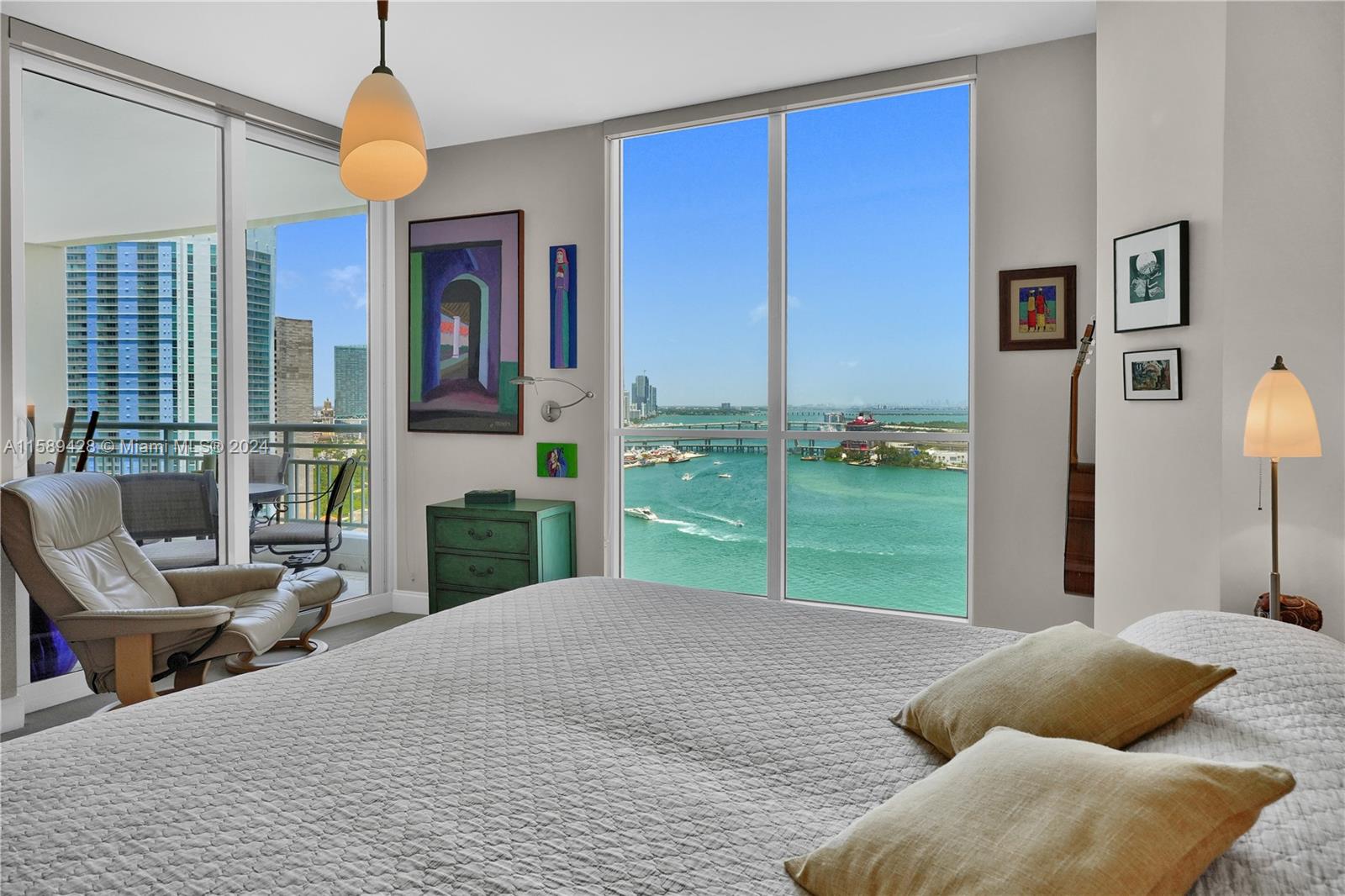 25th-floor unit with breathtaking views from every corner, stunning vistas of the Miami skyline, from Key Biscayne to Miami Beach, the Port of Miami, downtown, and Aventura. The meticulously maintained residence features a versatile second bedroom, originally a den, with a bathroom, walk-in closet, Murphy bed, and desk. The kitchen has updated appliances, and the open living space is perfect for entertaining with electric shades and a built-in AV system. Rare two stand-alone parking spots and two side-by-side storage units. Enjoy luxury amenities, pool, tennis court, business center, and a state-of-the-art gym with ocean views. Brickell Key combines the laid-back feel of a private island with urban luxuries, including restaurants, marketplaces, and a scenic walkway encircling the island.