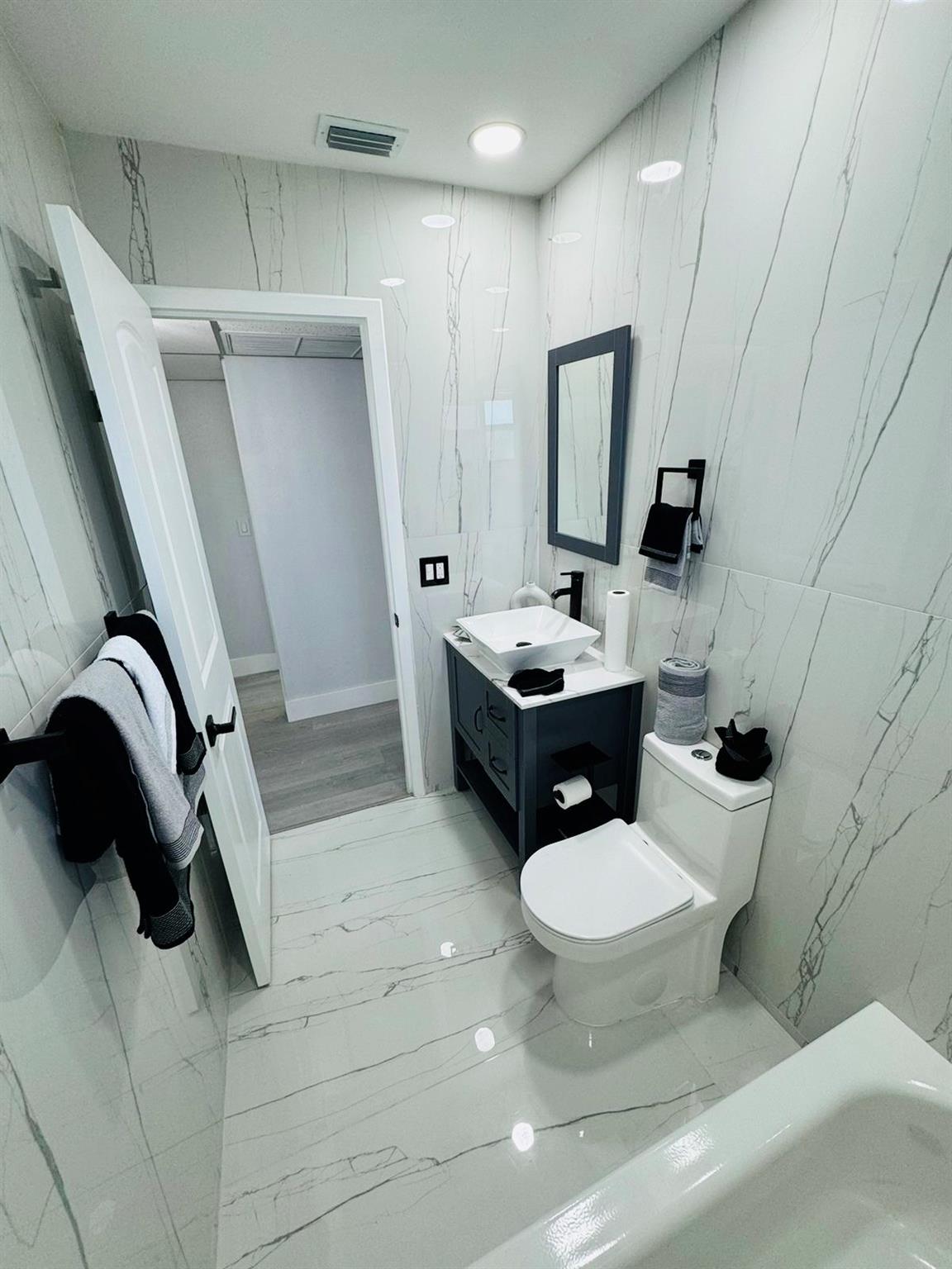 Discover your ideal home: a luxurious 2-bed, 2-bath unit on the second floor. The kitchen is a culinary masterpiece with stainless-steel appliances, quartz countertops, and an inviting island. The open-concept design, enhanced by numerous windows, floods the space with natural light and offers stunning garden views. Enjoy modern bathrooms with frameless showers and rainfall systems. Fresh paint and new luxury vinyl floors create an elegant ambiance. Community perks include a clubhouse, indoor/outdoor pools, and tennis courts. Located near the ocean, this move-in ready home features a 2020 AC, a new 2024 water heater, and includes a washer and dryer. Conveniently, the pool, laundry room, and dumpster are just steps away. Virtual rendering in the unit, the property is unfurnished.