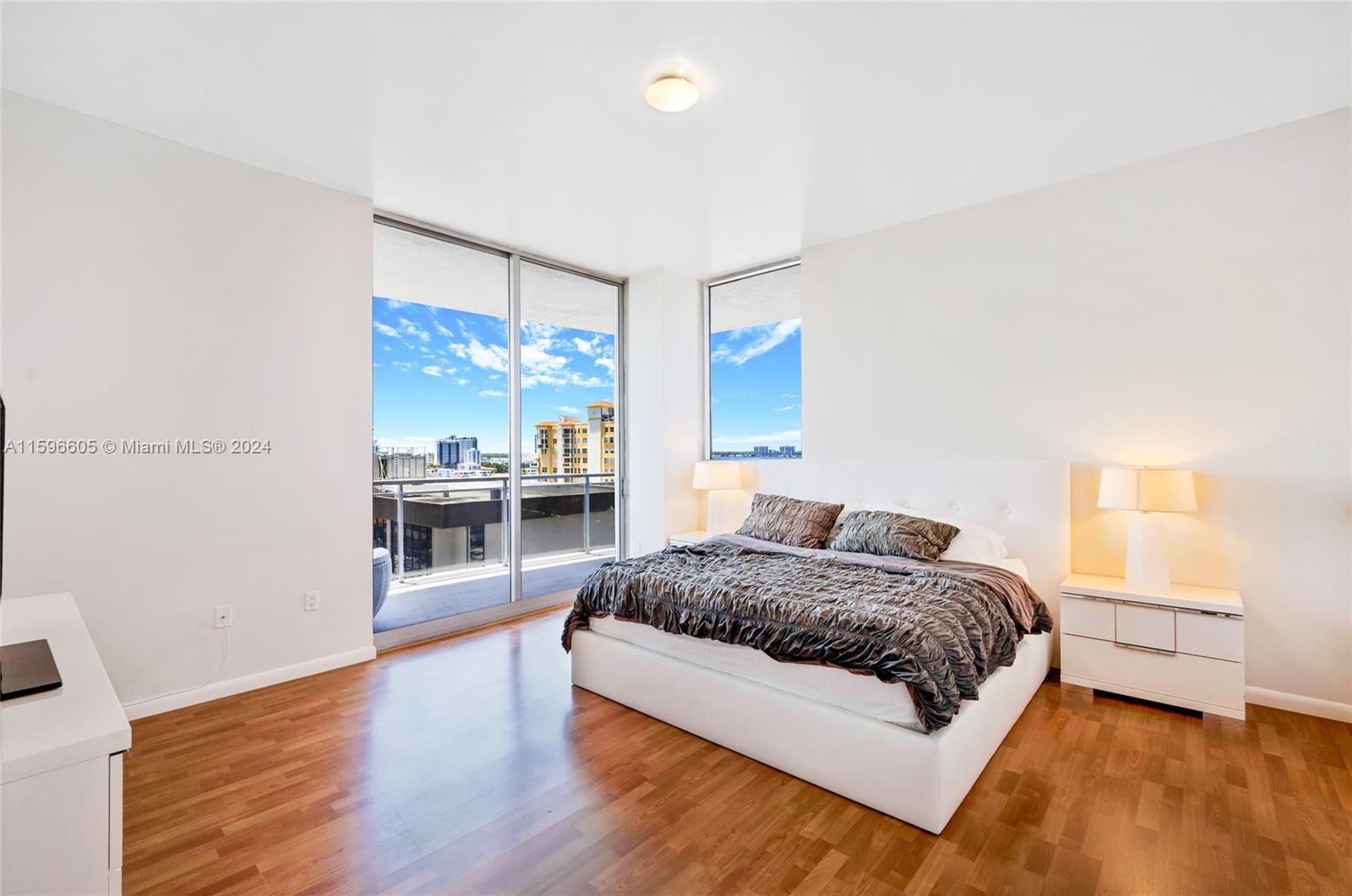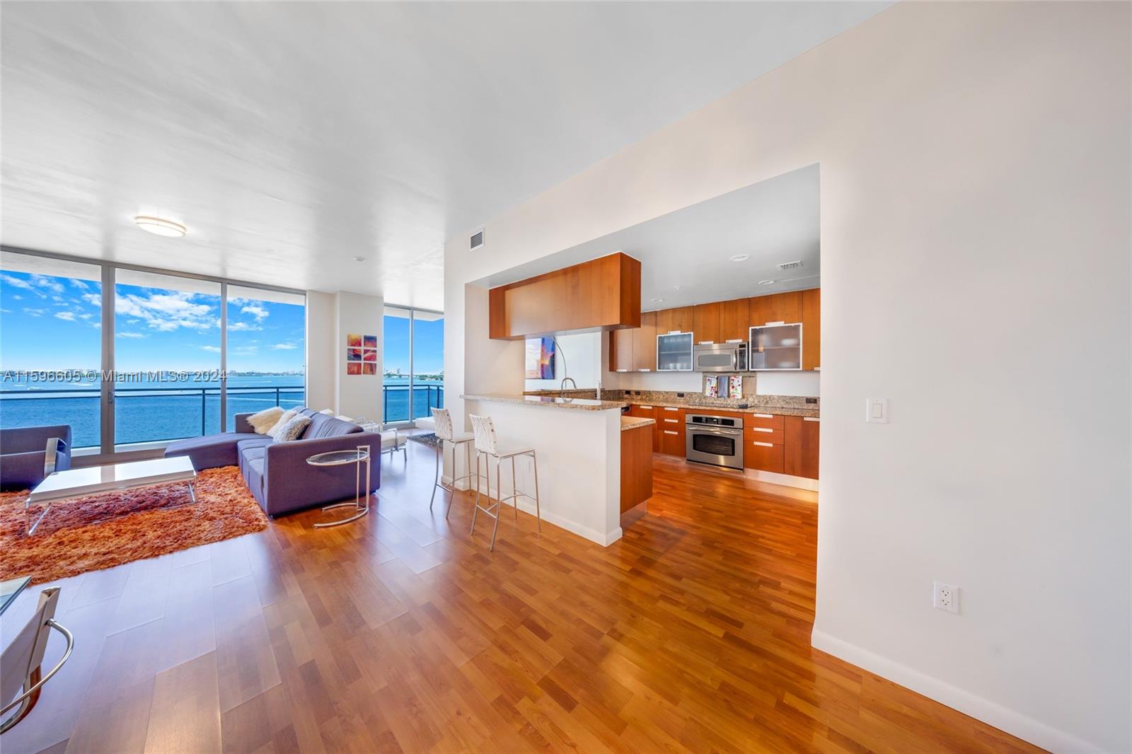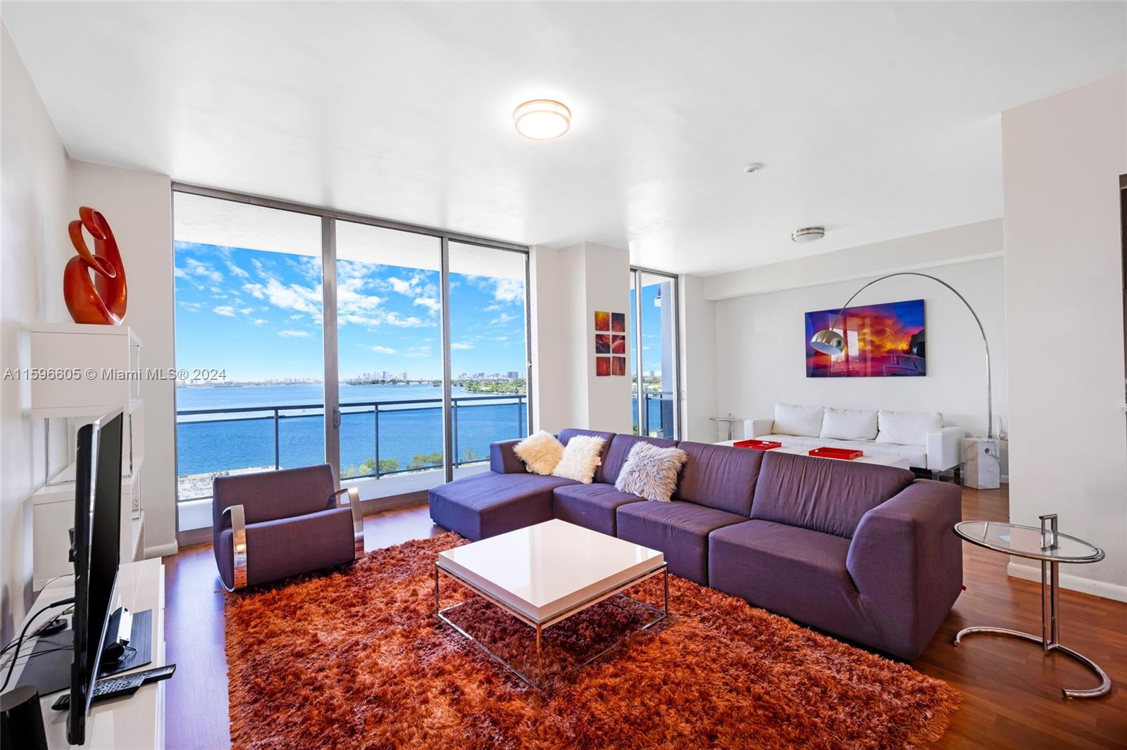 Experience luxury living in this exquisite corner unit located in the heart of North Bay Village. With breathtaking water and city views from every room, this condo truly captures the essence of Island living. Boasting 2 bedrooms + Den / 2.5 bathrooms, this spacious condo offers 1,753 sq ft of living area and an expansive 608 sq ft balcony. The open floor plan is flooded with natural light, creating a warm and inviting atmosphere. The large kitchen is a chef's dream, featuring SS appliances, ample counter space, and abundant storage. A snack counter runs the length of the kitchen, perfect for casual dining or entertaining guests. CONTINUED UNDER SUPPLEMENTAL REMARKS.