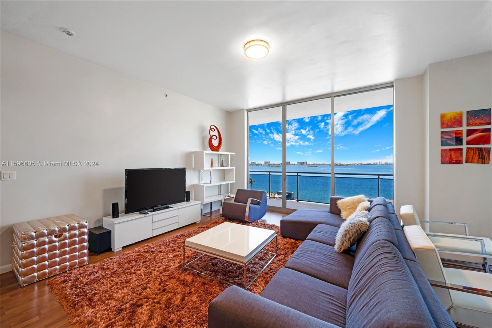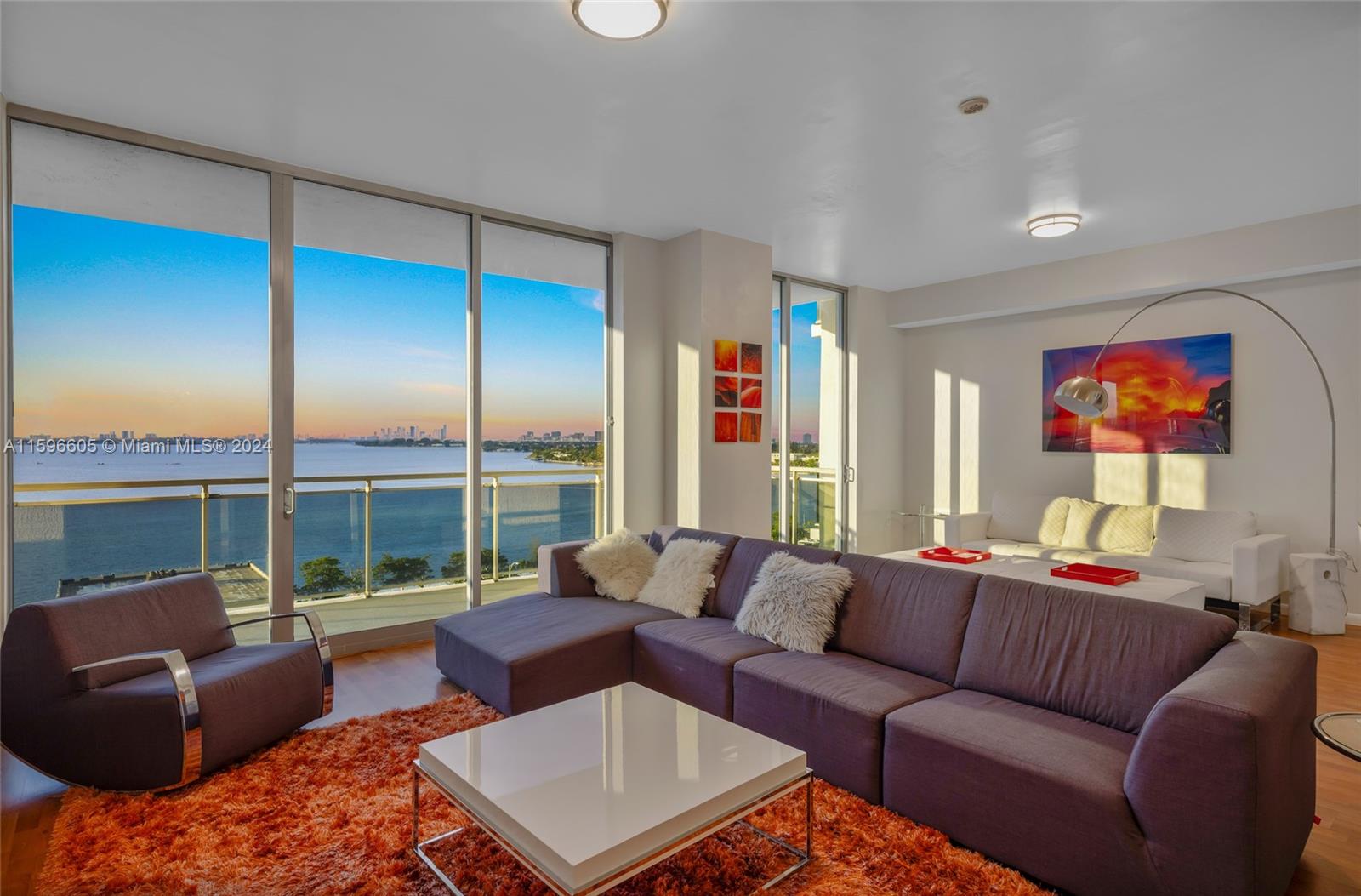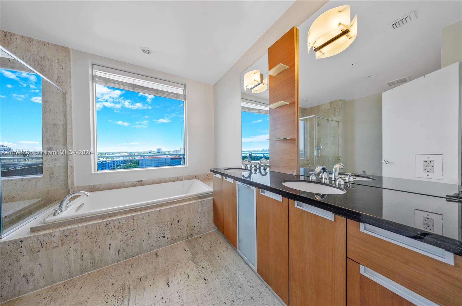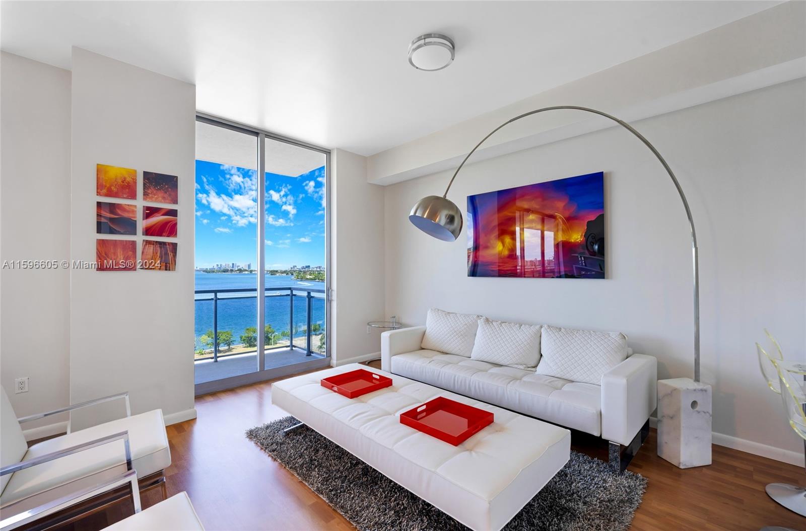 Experience luxury living in this exquisite corner unit located in the heart of North Bay Village. With breathtaking water and city views from every room, this condo truly captures the essence of Island living. Boasting 2 bedrooms + Den / 2.5 bathrooms, this spacious condo offers 1,753 sq ft of living area and an expansive 608 sq ft balcony. The open floor plan is flooded with natural light, creating a warm and inviting atmosphere. The large kitchen is a chef's dream, featuring SS appliances, ample counter space, and abundant storage. A snack counter runs the length of the kitchen, perfect for casual dining or entertaining guests. CONTINUED UNDER SUPPLEMENTAL REMARKS.