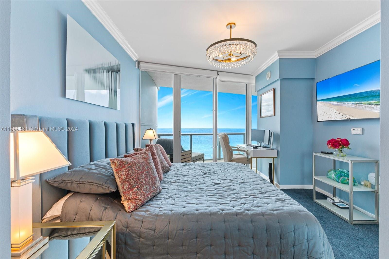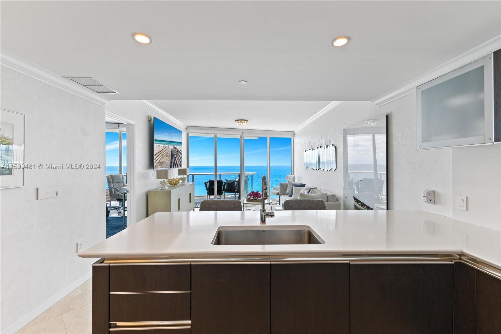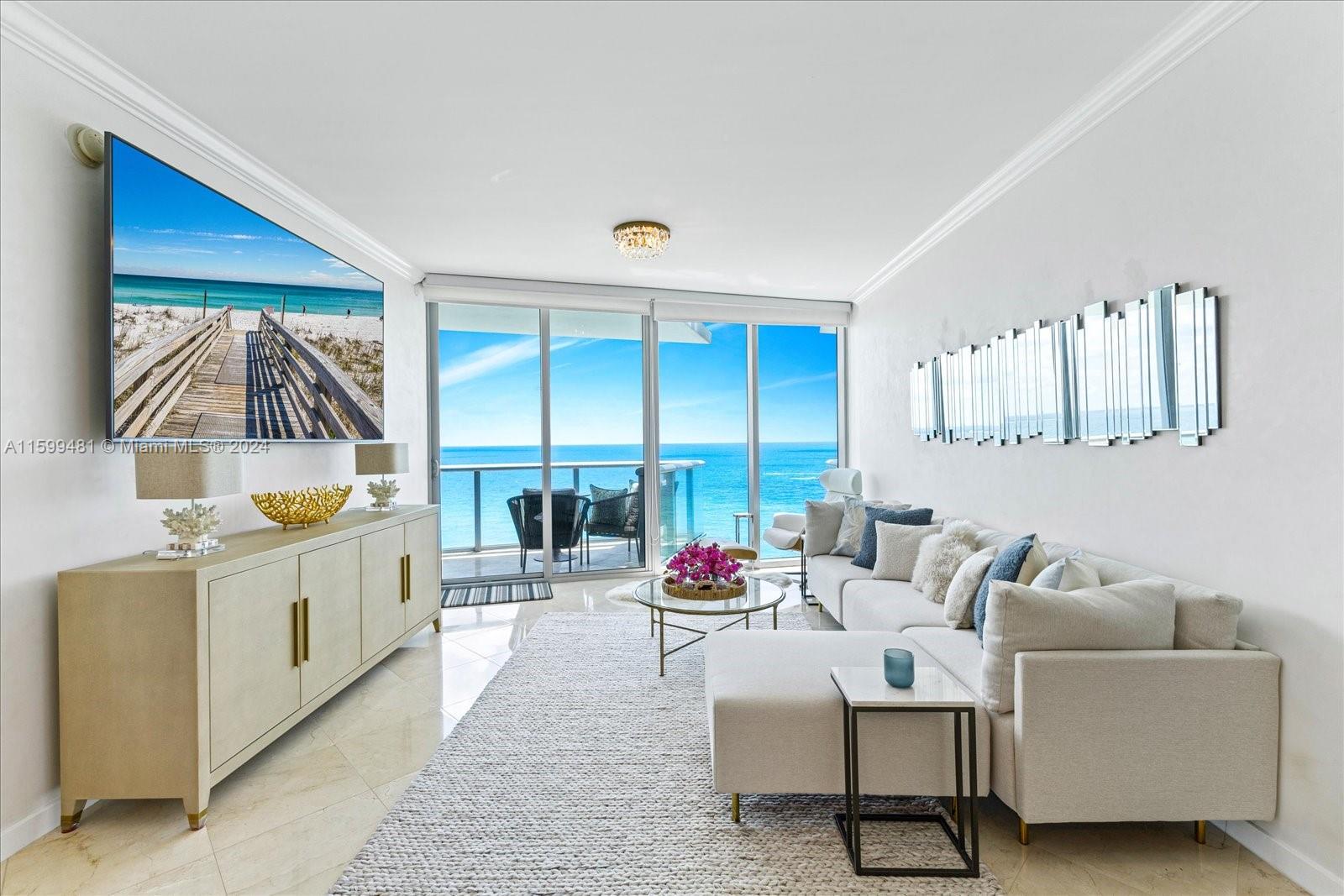 Direct ocean fully furnished and designed residence at Jade Beach. Residence features 1 bedroom /1.5 bath with private elevator and an oversized deep balcony. This desired floorplan features direct ocean views from all rooms and spectacular sounds from the ocean. Kitchen features high-end italian Snaidero kitchen and SubZero appliances. Jade Beach is a full service 5 star luxury building offering world class hotel style amenities, private beach access, sunrise and sunset pool, pool bar restaurant, spa, gym, kids room & more. Turn key and ready for immediate occupancy.
