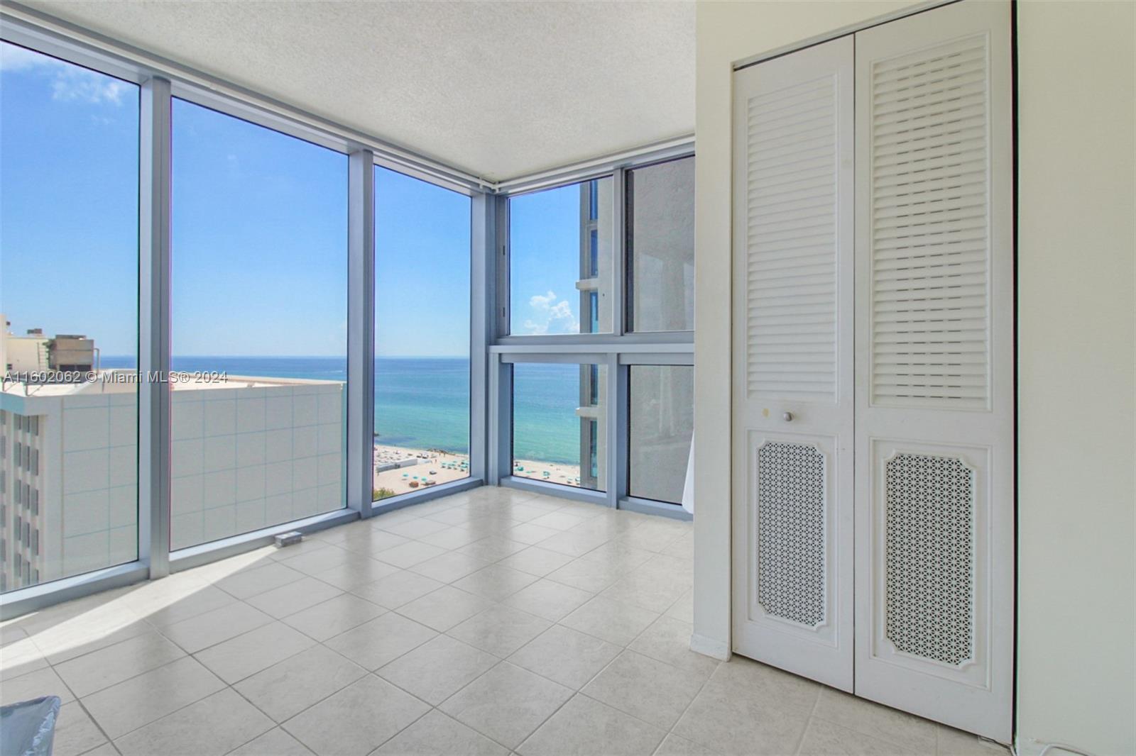 Best price for a high floor unit with ocean & bay views right on the beach! Huge 1,122 sqft 1-BR, 1.5-bath with renovated baths & den for a 2nd BR or office. Freshly painted with a large balcony offering direct ocean sunrise views. Impact windows & doors ensure safety. Enjoy resort-style amenities: 24 hr security on-site gym, pool, sauna, bicycle storage, & community room, covered garage parking. A short walk on the beach to the Faena cultural, Lincoln Road, Ocean Dr, & more. A short drive to Downtown Miami, Brickell, and the Design District/Wynwood Art District. Great investment with a rental minimum of 90 days per year and immediate rental availability. The 2024 budget is approved with full reserves. Best price unit, check COMPS!! No pets, service pets OK. SPECIAL ASSESSMENTS ALL PAID!