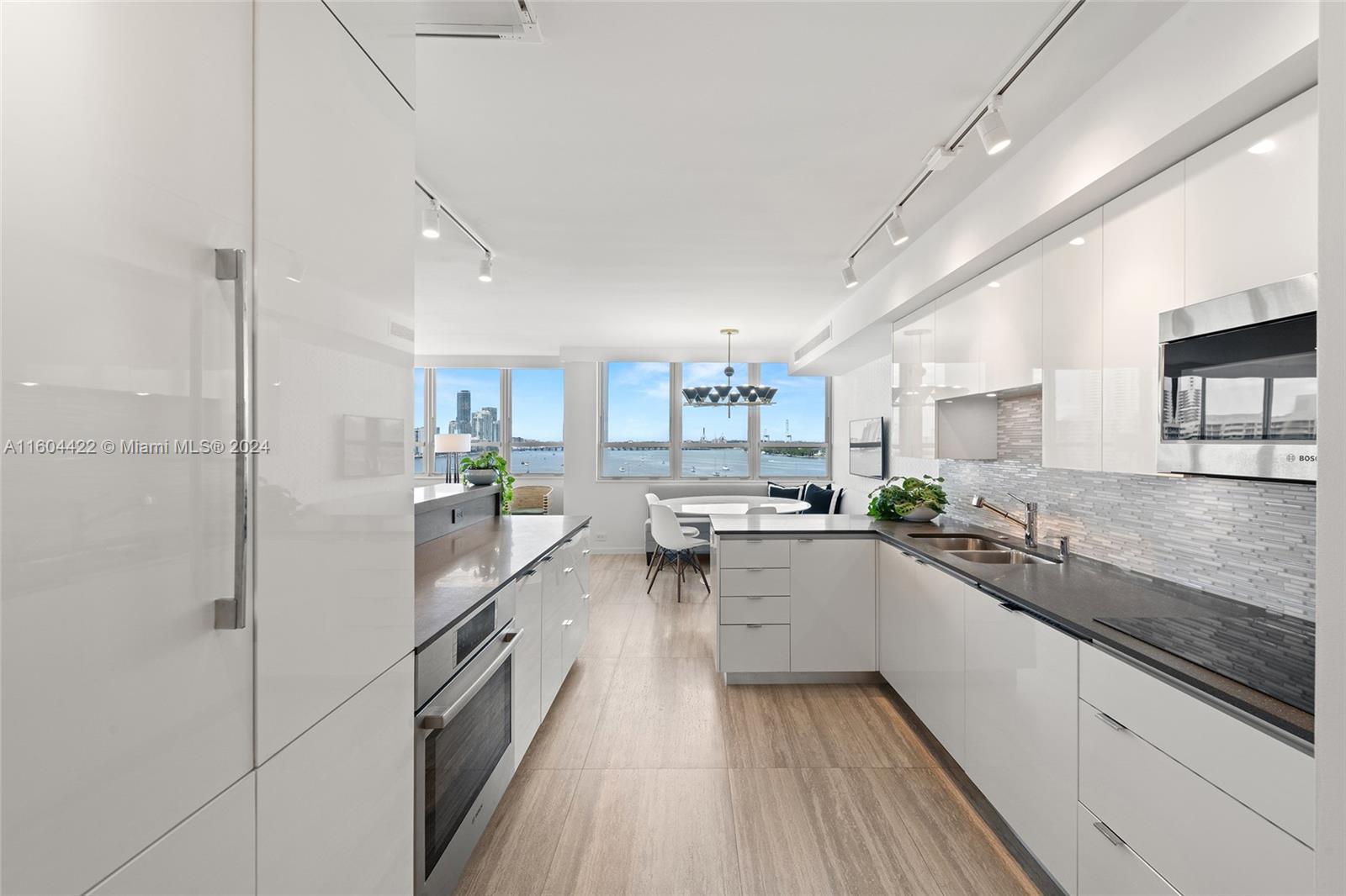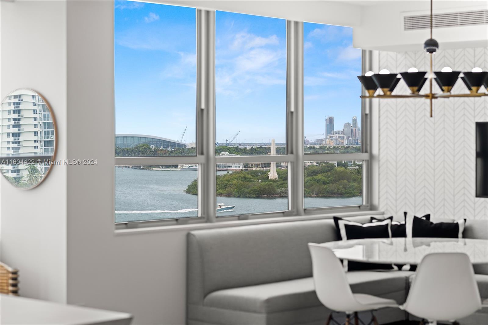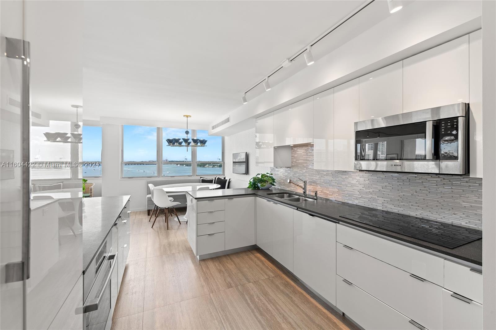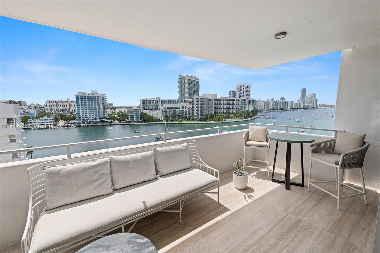 Live your life in this stunning and rarely available corner unit in highly desirable Belle Isle. With gorgeous sweeping panoramas of the bay, Star Island and Miami Beach, tour the turquoise waters of Biscayne Bay from your very own boat and deeded boat slip. Meticulously and completely renovated 2/2.5, with custom kitchen cabinetry, granite, breakfast nook and formal dining. Covered parking. Bosch in-unit laundry and closet built-ins. Large balcony with impact sliders and windows; electric shades throughout. Elegant master suite with double vanities and separate tub and shower. Luxury living at its best—no expense spared. Located across from the Standard Hotel, walking distance to Lincoln Road, Publix, Fresh Market and all the restaurants and vibrance of South Beach. Furniture negotiable.