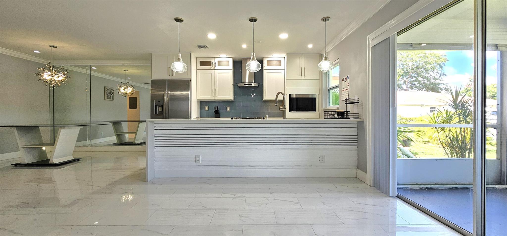 Masterfully upgraded unit that is positioned perfectly for peace and quiet. This condo features White porcelain tiles, waterfall Quartz counter ,New cabinets, high end appliances , brand new AC ,color balanced backsplash and impact windows. Step out the back and you have your own garden , short drive to the beach or Atlantic Ave. This is a unit that is tailor made for the discerning buyer who wants easy access to town, in lush surroundings, and with all of life's modern amenities. Seller ready to move , make an offer.