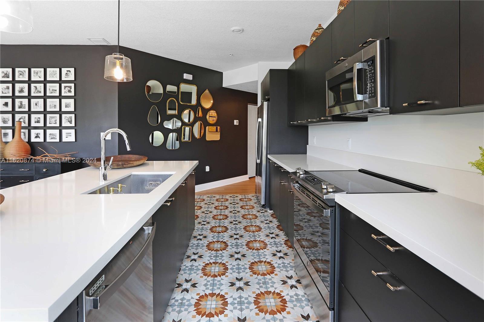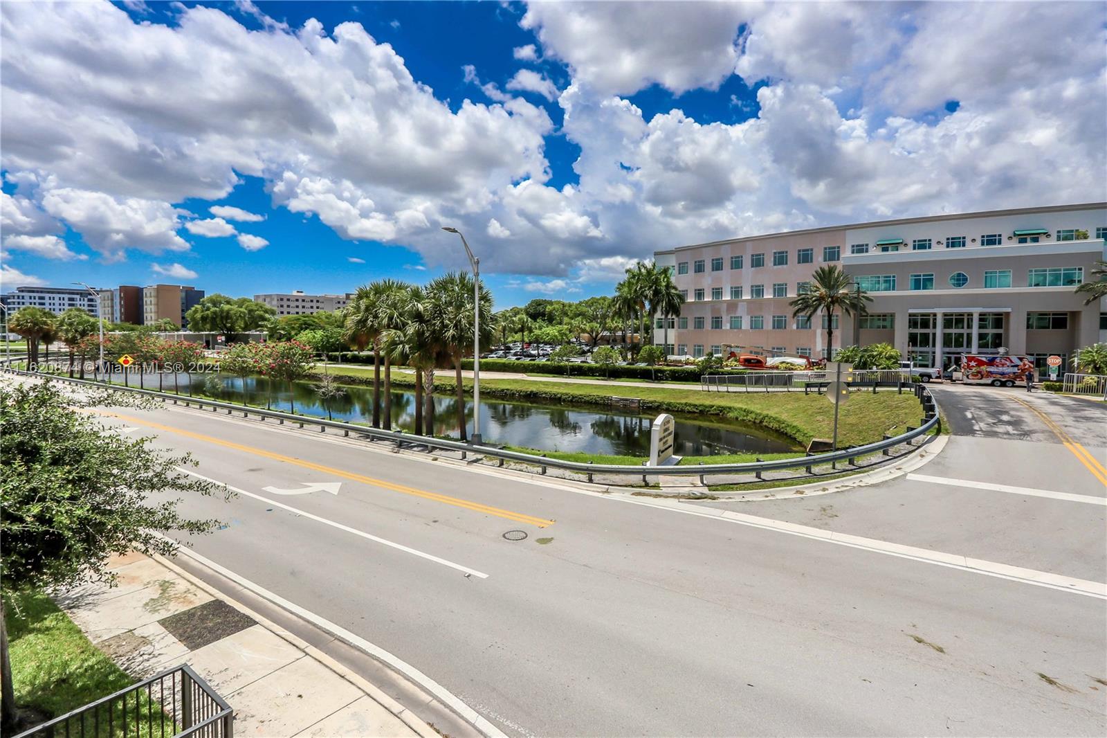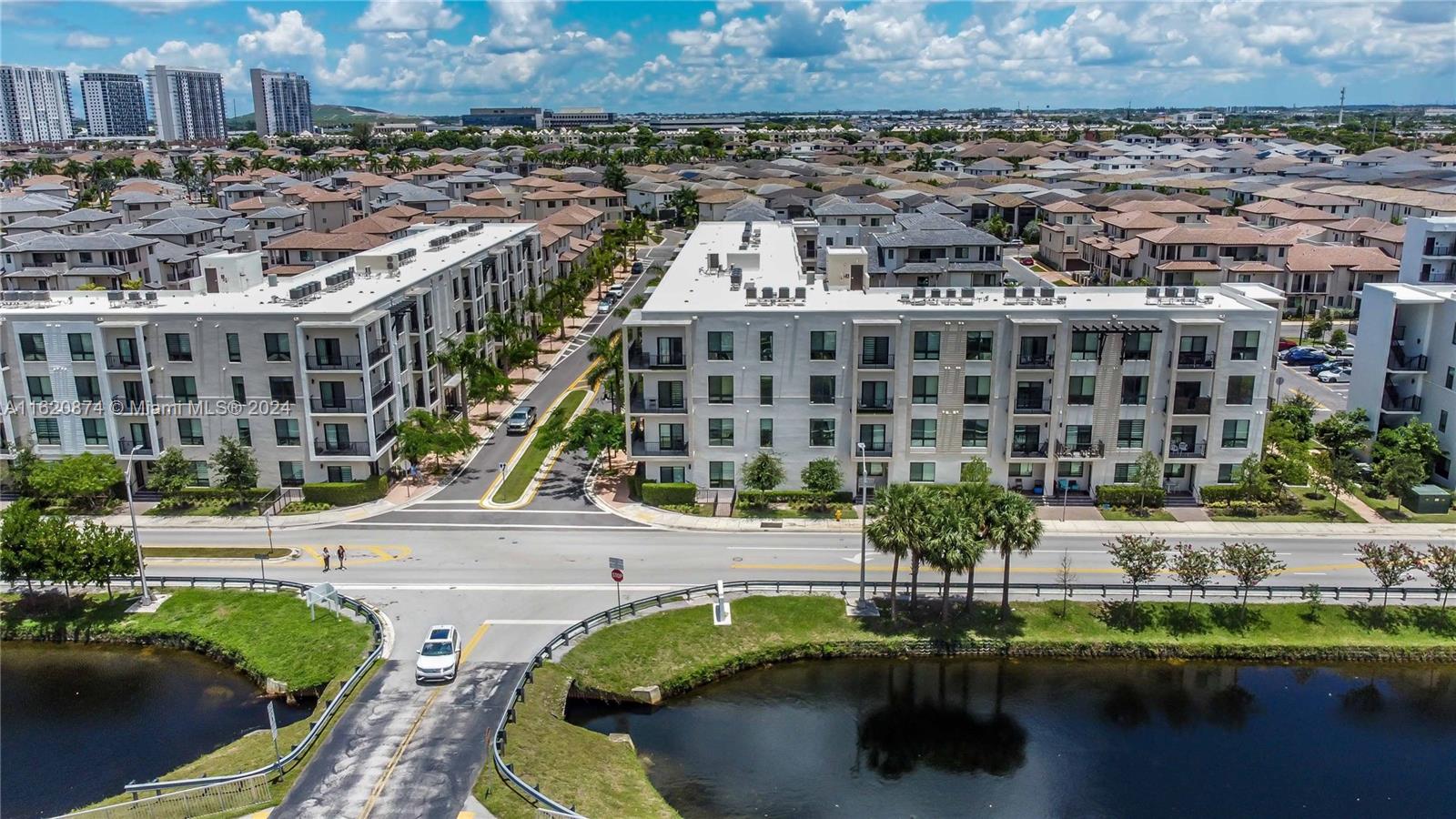 Bright and spacious corner unit with canal views. This beautifully updated 3/2 apartment offers 1,336 square feet of comfortable living space. Features open and inviting layout, new laminate floors throughout providing a modern and cohesive feel, perfect for any decor style. The kitchen boasts Moroccan style tile flooring, custom light fixtures throughout, new hardware on cabinets in both the kitchen and bathrooms Each bedroom is equipped with blackout blinds to ensure a restful night's sleep, while the rest of the apartment features stylish custom blind.The spacious primary bedroom includes a custom closet designed to maximize storage.Located in Urbana, Downtown Doral's newest construction, 3 minute drive to Palmetto expressway and walking distance to Downtown Doral and Doral City Place.