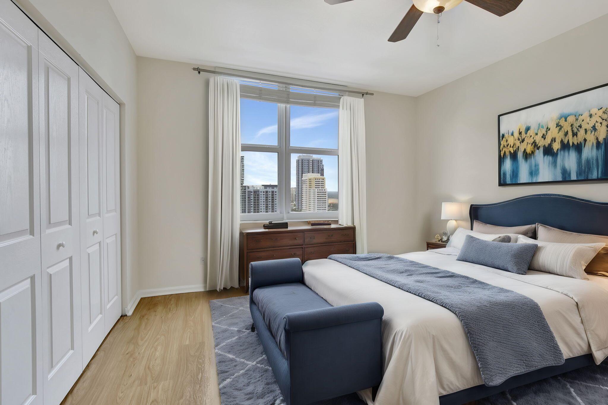 THE LAGEST ,MOST UNIQE 2 BEDROOM RIVER VIEW FLOOR PLAN IN THE BUILDING IN THE HEART OF FORT LAUDERDALE ! High floor ,corner unit in the popular ''14'' Stack. Stunning River ,Sunset , South Facing Views Additional living room window fore more natural light than the typical 2 bedroom unit in Great condition , move in ready . HOA includes unlimited water and all amenities . Pet & investor friendly. Resort style Amenities : 24 hr. concierge ,security , front desk , rooftop, pool w / unrivaled panoramic city , river & ocean views , sky lounge ,BBQ grills . fitness center , basketball + racquetball courts, yoga , jacuzzi , steam rooms, saunas ,meditation garden and more .Located directly on the New River & River walk .Walk 5 min to Las Olas Blvd for restaurants, Shops , nightlife & more.