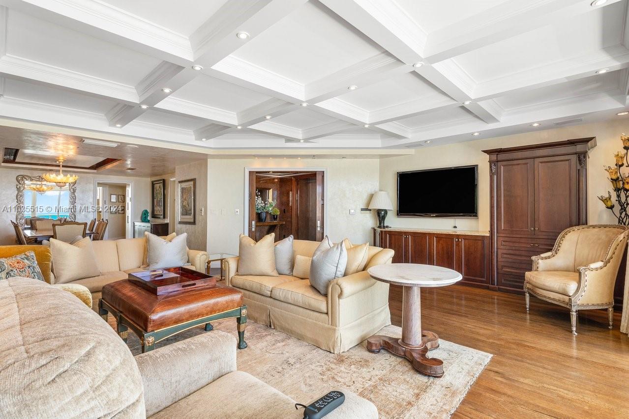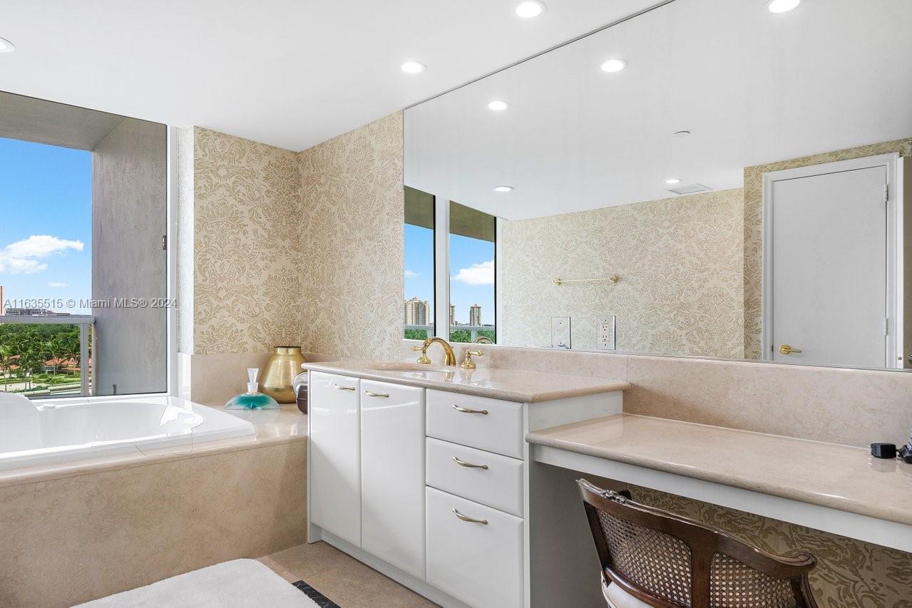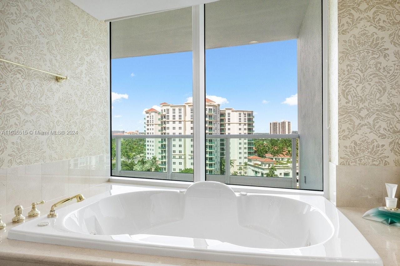 Discover a spectacular apartment at Porto Vita Residences in Aventura, FL. This stunning unit features 3 bedrooms, a family room, and 4.5 bathrooms. Enjoy breathtaking views of the ocean, Intracoastal Waterway, golf course, and city skyline from this floor-through unit. Enjoy both sunrise and sunset from expansive terraces accessible from every room. The apartment boasts wood floors throughout and custom wood-built walk-in closets. Additional amenities include a private elevator, 24-hour security, concierge, and valet services. Porto Vita offers a luxurious lifestyle with access to a private club featuring restaurants, a gym, a spa, tennis courts, a pool, and a beauty salon. Experience unparalleled elegance and convenience in this exquisite residence.