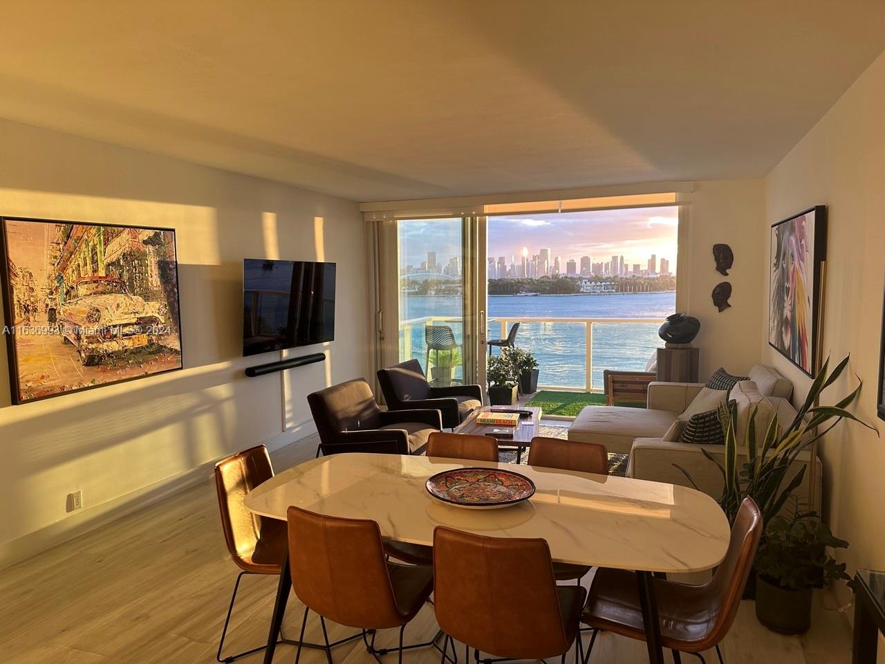 Breathtaking direct water views of Downtown Miami, Star and Hibiscus Island from every window! Best sunset views on South Beach. Meticulously renovated 1/1 unit in the Mirador South featuring modern, open kitchen with stainless steel appliances and stone counter tops. Upgraded bathroom featuring open shower and modern fixtures. New hurricane proof windows and all glass balcony. Electric blackout shades. Assigned parking space in the garage for additional 25K. Mirador offers full-service amenities with 24-hour concierge, security, pool, jacuzzi, valet and 5000 sq ft fitness center. High speed internet and cable included in the maintenance. All special assessments paid.