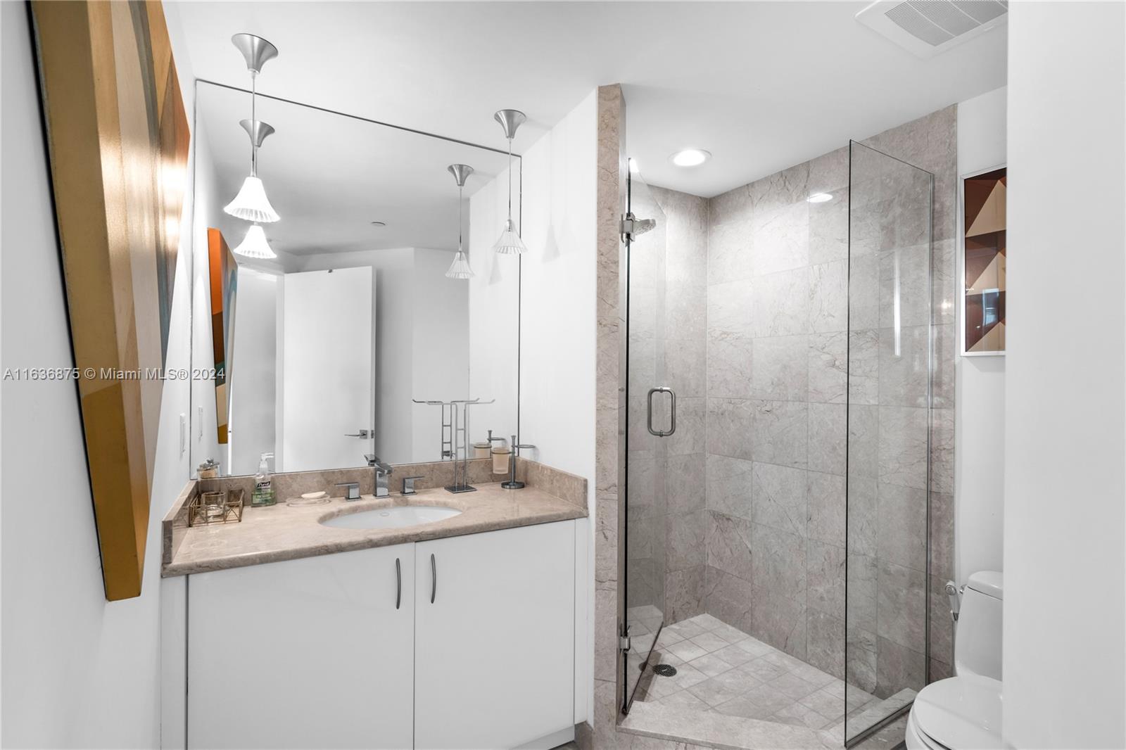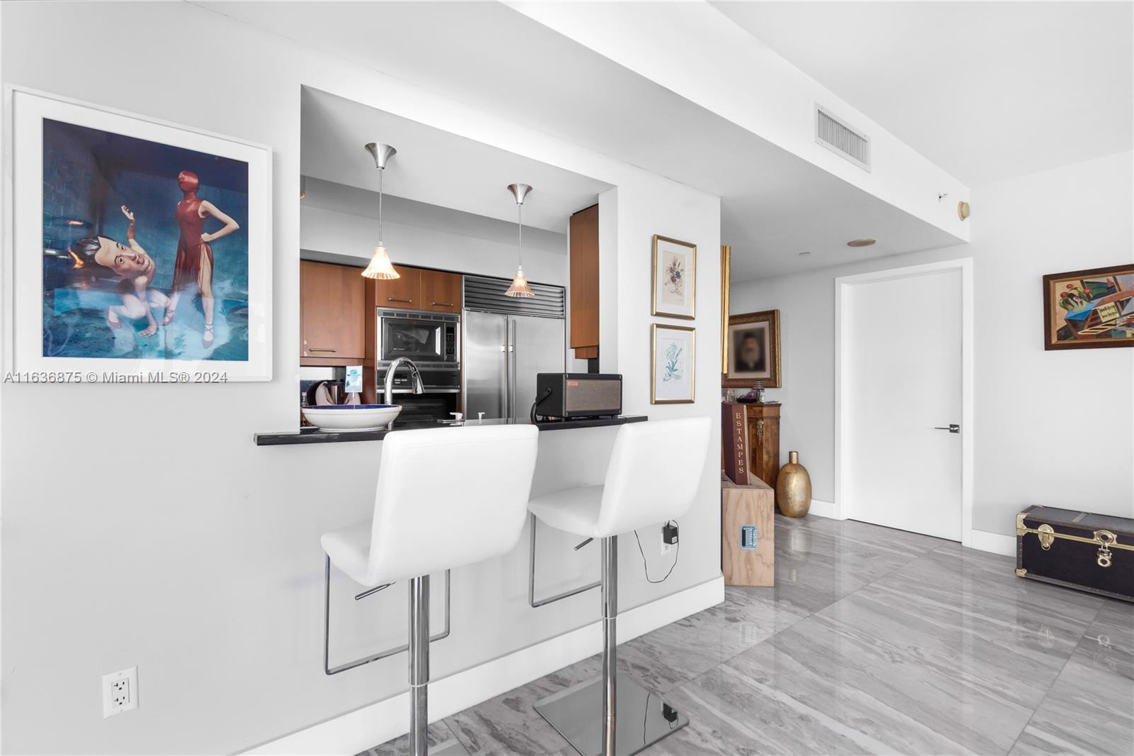Experience luxury waterfront living in the heart of Brickell with this sophisticated resort-style unit boasting stunning views and unparalleled elegance. Just steps from all the booming action, this location offers five-star amenities including a state-of-the-art fitness center with bay views, an infinity-edge pool with cabanas and towel service, a spa, sauna, and steam room, as well as a roof-top sky lounge, library, media room, observation deck, business center with conference room, racquetball court, and on-site restaurant. With a private entrance from the elevator direct to your unit and two parking spaces (one assigned and one valet), this excellent building promises an unmatched living experience in the prime location of Brickell.