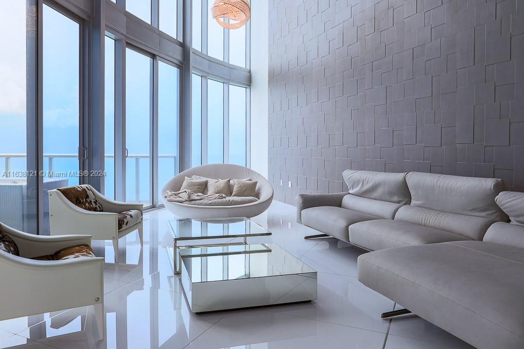 Discover unparalleled luxury at this magnificent Jade Beach Sunny Isles penthouse. This 4,141 SF two-story residence features a private elevator, expansive living spaces, and 22' ceilings. Enjoy breathtaking ocean and Intracoastal views from floor-to-ceiling windows and four terraces. The master bedroom offers two closets and bathrooms, with four additional bedrooms. High-end Miele appliances, subzero refrigerator, coffee maker, and wine cooler enhance the kitchen. Experience full automation for temperature, lighting, and blinds. Amenities include a fitness center, spa, pools, children's playrooms, and beach service. Ideally located near Bal Harbour Mall, Aventura Mall, and top dining options, this property epitomizes luxury and convenience.