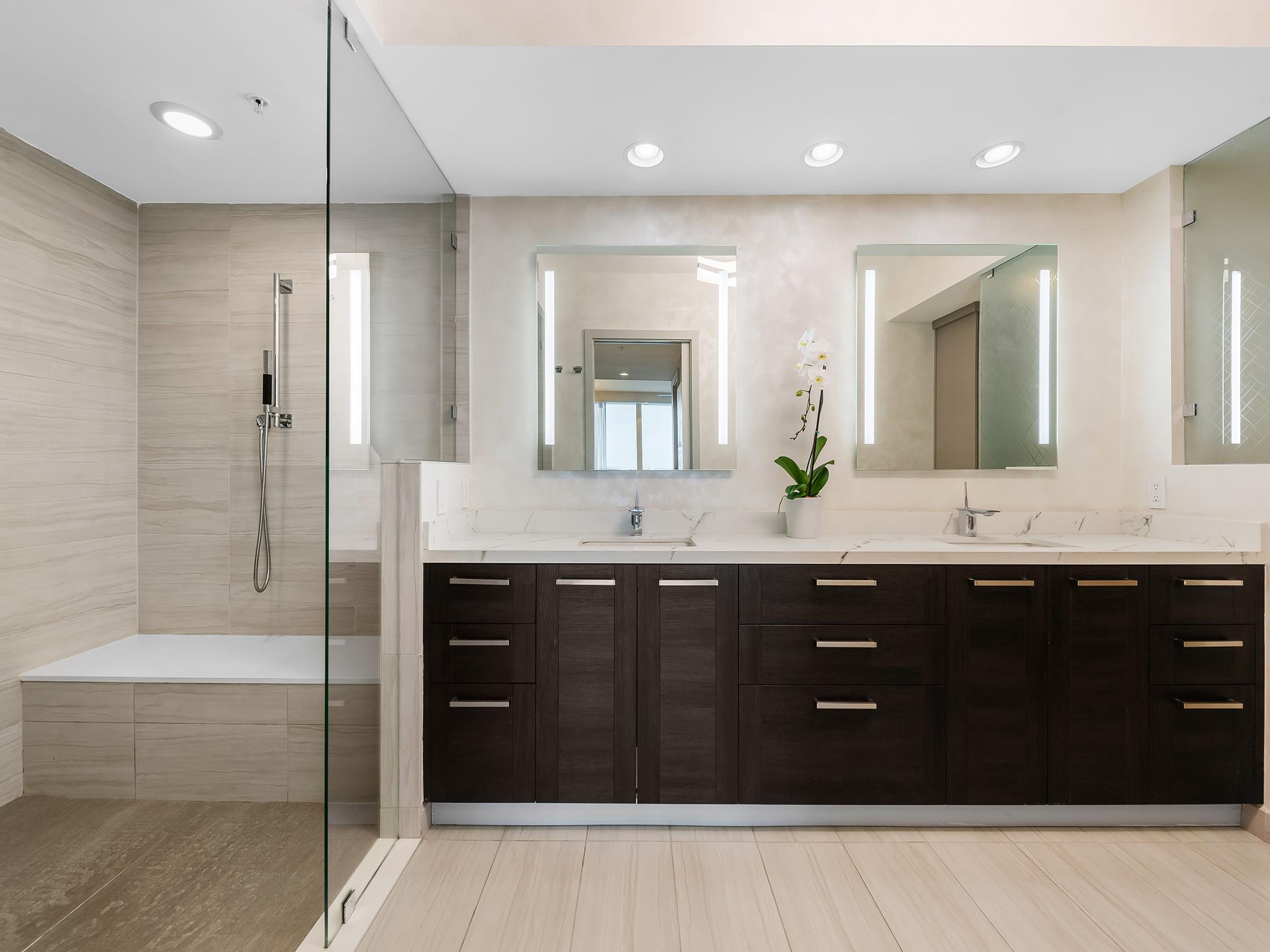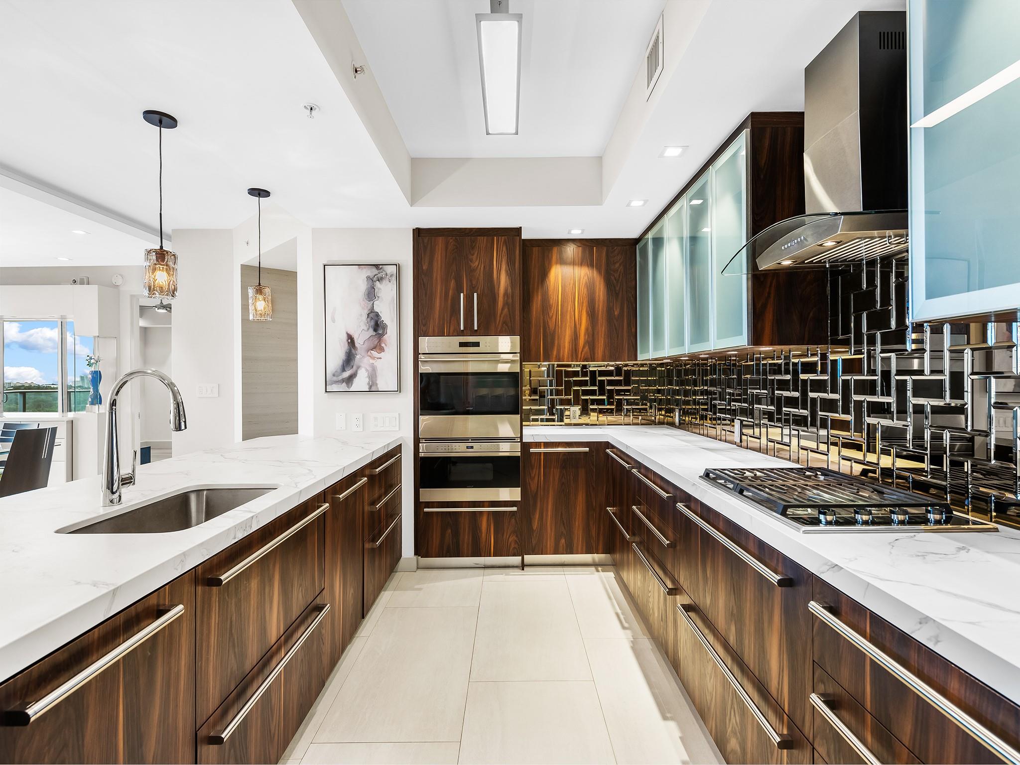 Experience true luxury living in this custom-designed 10th floor unit! Private foyer entry welcomes you to the grand open-concept living areas bathed in natural light from floor-to-ceiling windows/doors - offering breathtaking river & ocean views! Thoughtfully designed dream kitchen has Italian cabinetry with roll outs, Wolf GAS cooktop, Subzero frig, wine cooler and oversized waterfall edge island. Modern glass-enclosed home office provides an efficient & private workspace. Bedrooms are ensuite, with built-out closets; also Lutron Smart Lighting, electric blinds. Massive & deep 70’ long terrace invites fresh-air dining/living w/its built-in gas summer kitchen. Also: Indoor Laundry, 2/pkg spaces, large 50 SF storage locker & superior resort-style amenities ensure an unparalleled lifestyle!