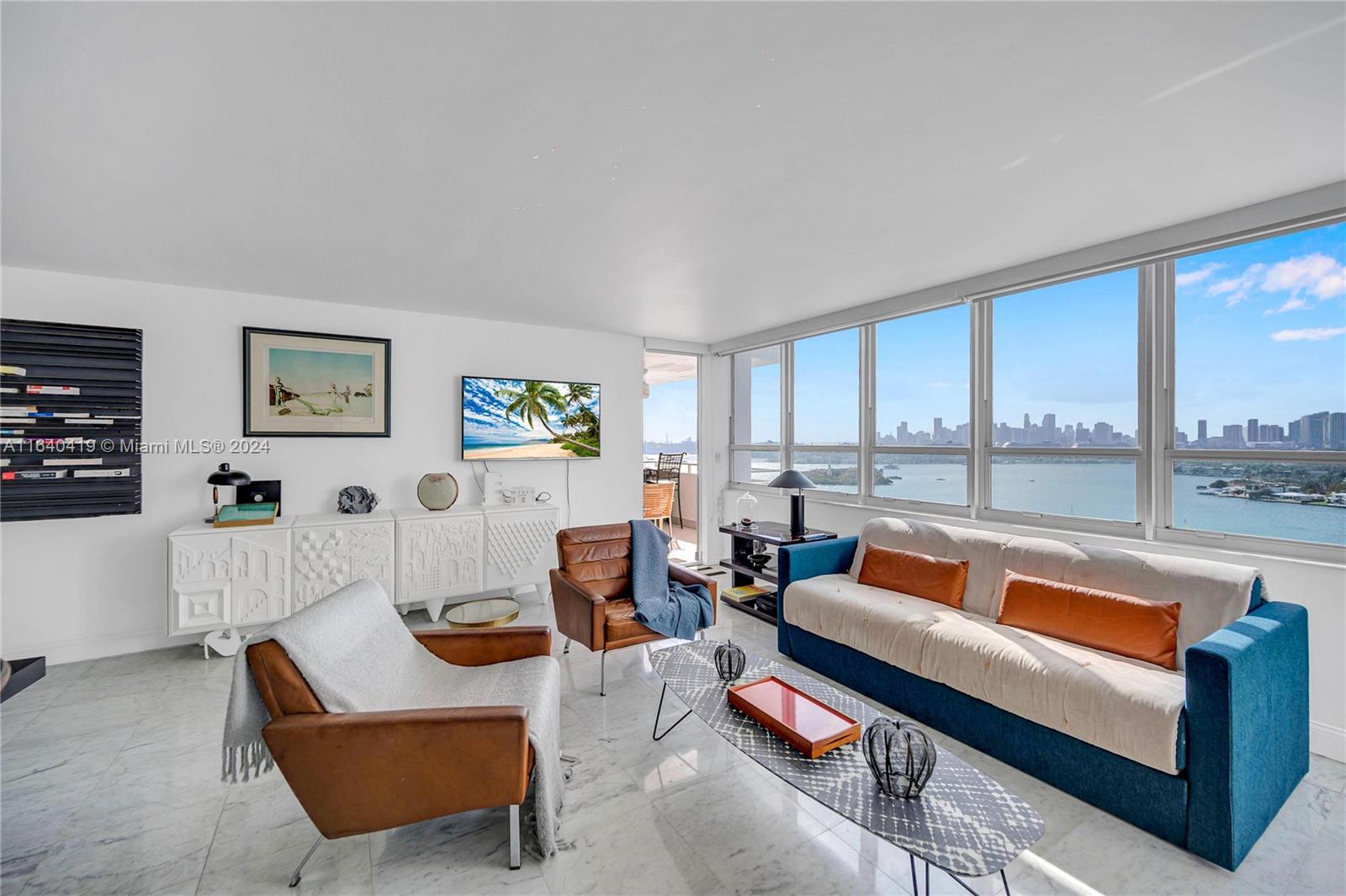 Supersized one bedroom with views and 2 full bathrooms. And what a view! Downtown skyline, Bay, cruise ships, and incredible sunsets. Generously sized balcony accessible from bedroom or living room, Carrara marble floors throughout; ample storage, with impact windows & doors. Building has many new upgrades: elevators, hallways, sprinkler system, gym, EV charging, and new LOBBY and Mezzanine. Pet friendly, covered parking, 24/7 front des, and additional storage is included. Make this your new pied-a-terre or year round home for tropical adventures on Miami Beach!