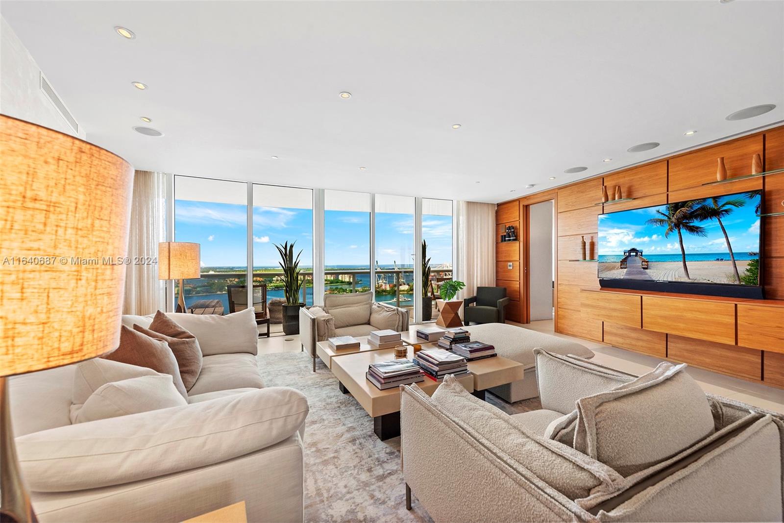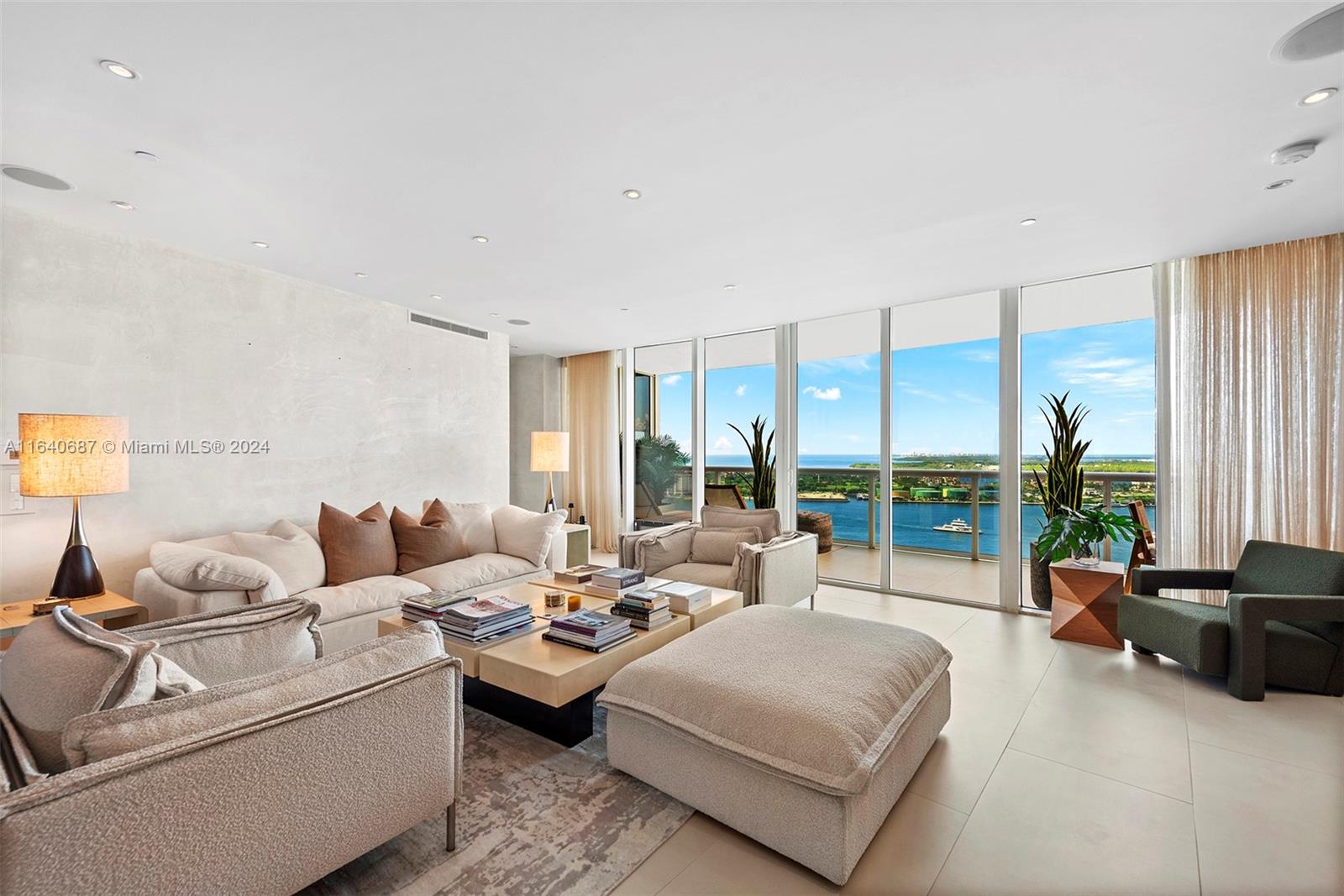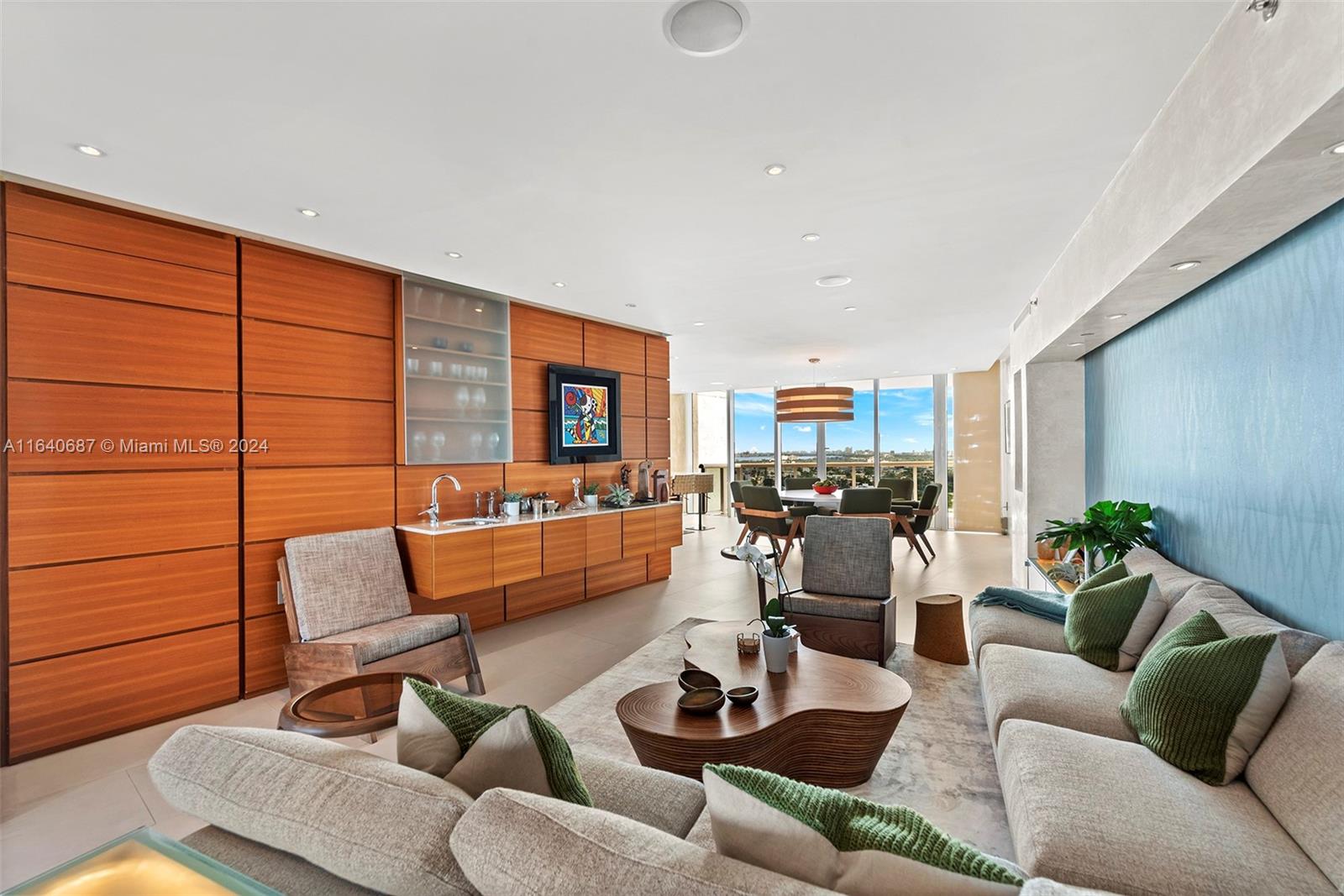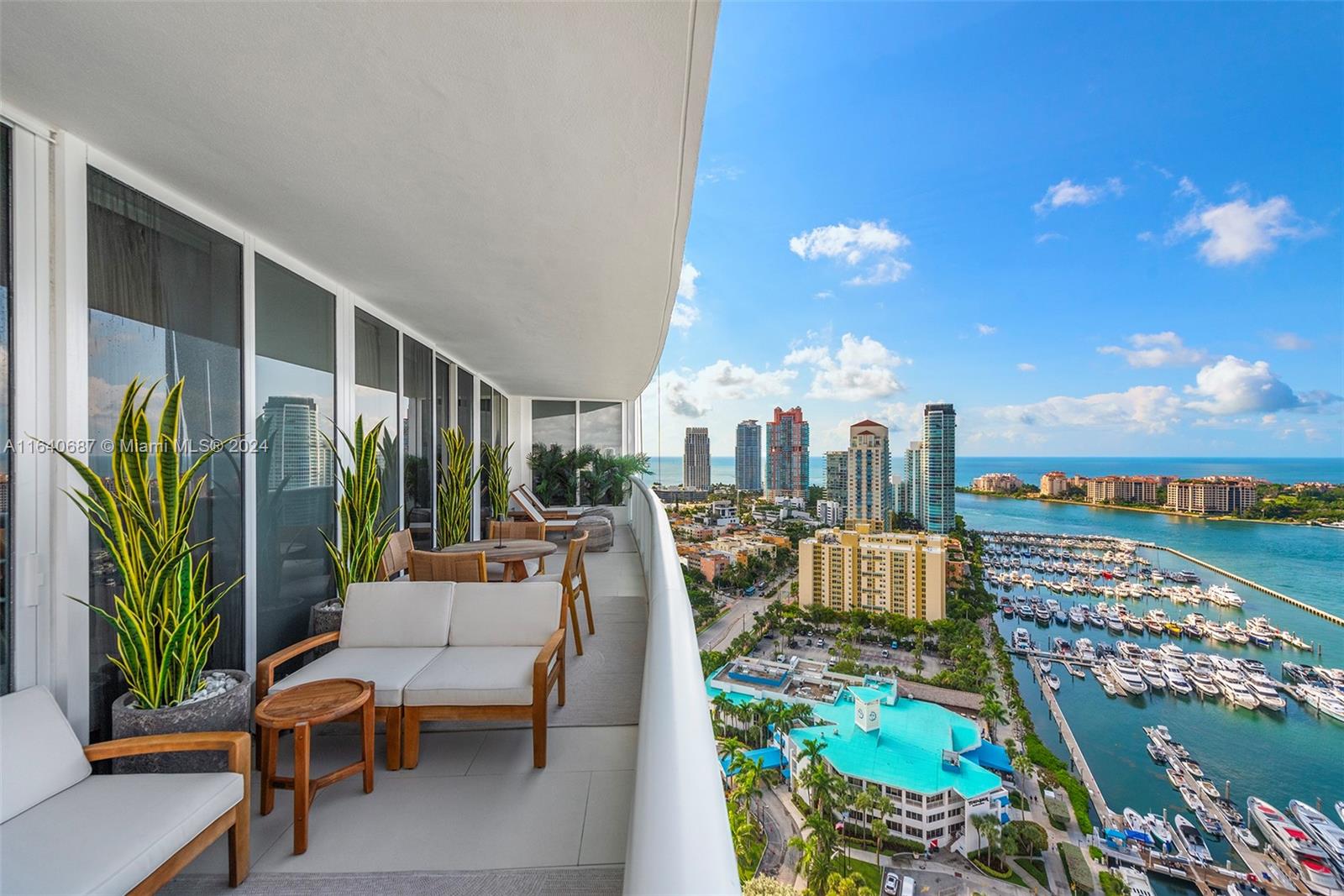 This rarely available 04-line flow-through residence offers stunning sunrise and sunset views, an open floor plan, and in-wall speakers in every room. The living area features intricate millwork and two elegant sitting areas, perfect for entertaining. The master suite includes a rain shower with jets and an in-wall mirror TV in the bathroom. Located in the sought-after South of Fifth neighborhood, this 3,000 sq. ft. home showcases floor-to-ceiling glass windows, Sub-Zero and Miele appliances, and breathtaking views of the ocean, bay, and city. Murano Grande offers luxury amenities, including a full-service pool, lighted tennis court, 24-hour valet, and concierge services, all within walking distance to South Pointe Park and top restaurants.