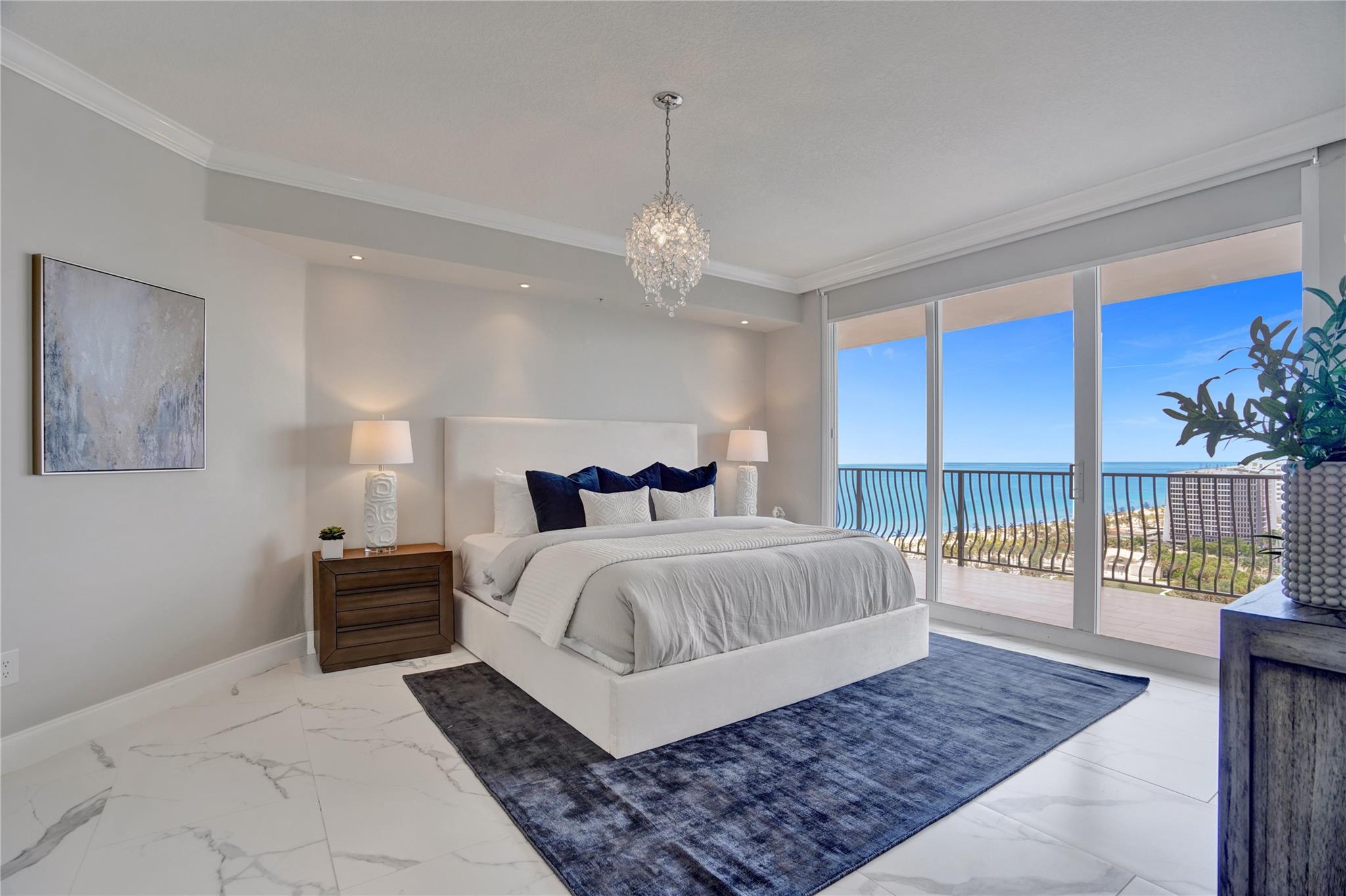 Spectacular panoramic views of the ocean, Intracoastal and city await from this graciously appointed and sought after southeast corner unit. Featuring 2 bedrooms, two and a half baths, plus office/den and oversized 1,100 SF wrap around terrace with brand new tile. Kitchen renovated with high end appliances, quartz countertops and beautiful cabinetry including wet bar in dining area with Miele coffee system, warming drawer and wine cooler. Spacious primary suite with double closets and primary bath with double vanity walk-in shower and jacuzzi tub. Both the primary suite and second bedroom have direct to access to the terrace and share those amazing ocean & Intracoastal views. Brand new washer and dryer, California Closets throughout. Two garage parking spaces. Pet Friendly Building!