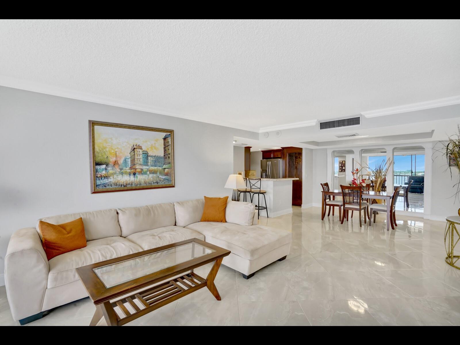 SPECTACULAR views from this amazing unit in a community that offers a manned gate, a heated swimming pool with a salt water system, tennis, pickelball, a fitness center, a club room and a fishing pier. Placido Mar has done extensive renovations and is nearly complete. Buiilding is located near restaurants, shops, Palm Beach Island, the Palm Beach International Airport and The Square. Gorgeous views can be had from both bedrooms, the living room and the expansive covered porch.