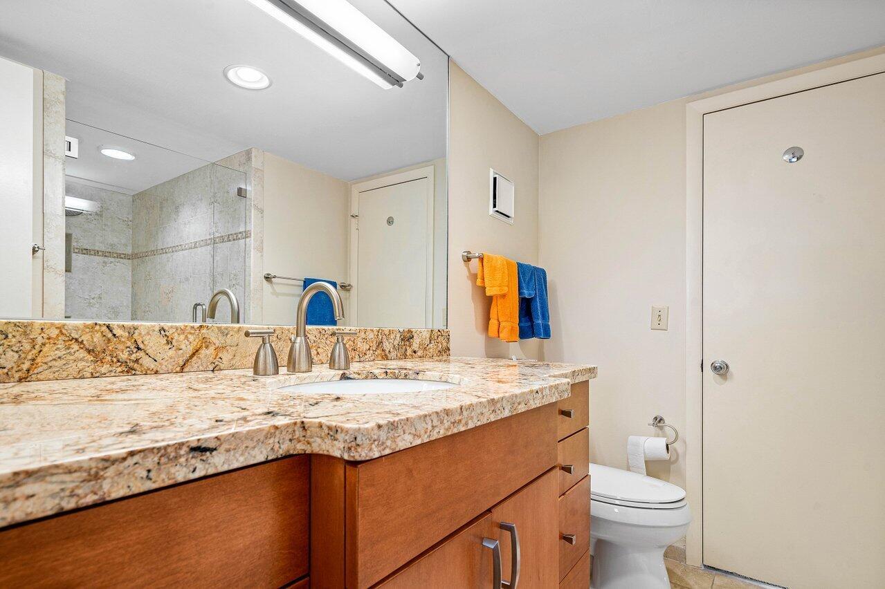 Elegantly updated 2 bedroom, 2 bath plus den (can be 3rd bedroom) 3rd floor condo undergoing major renovations all paid for by the sellers. Recent Assessment includes, newer roof, newer elevators, concrete restoration, building exterior to be re-painted. This unit features an updated eat-in kitchen with new cabinets and granite countertops. Frigidaire professional S/S appliances. Laundry room with washer & dryer and updated electric panel. Both bathrooms updated with new vanities, and granite countertops. Community pool, pest control, cable & internet, water plus building insurance and roof all included in your maintenance fee. Enjoy beautiful sunsets from your balcony every afternoon & only minutes to Boca's pristine beaches. Designated Parking spot #19 and lots of guest parking nearby