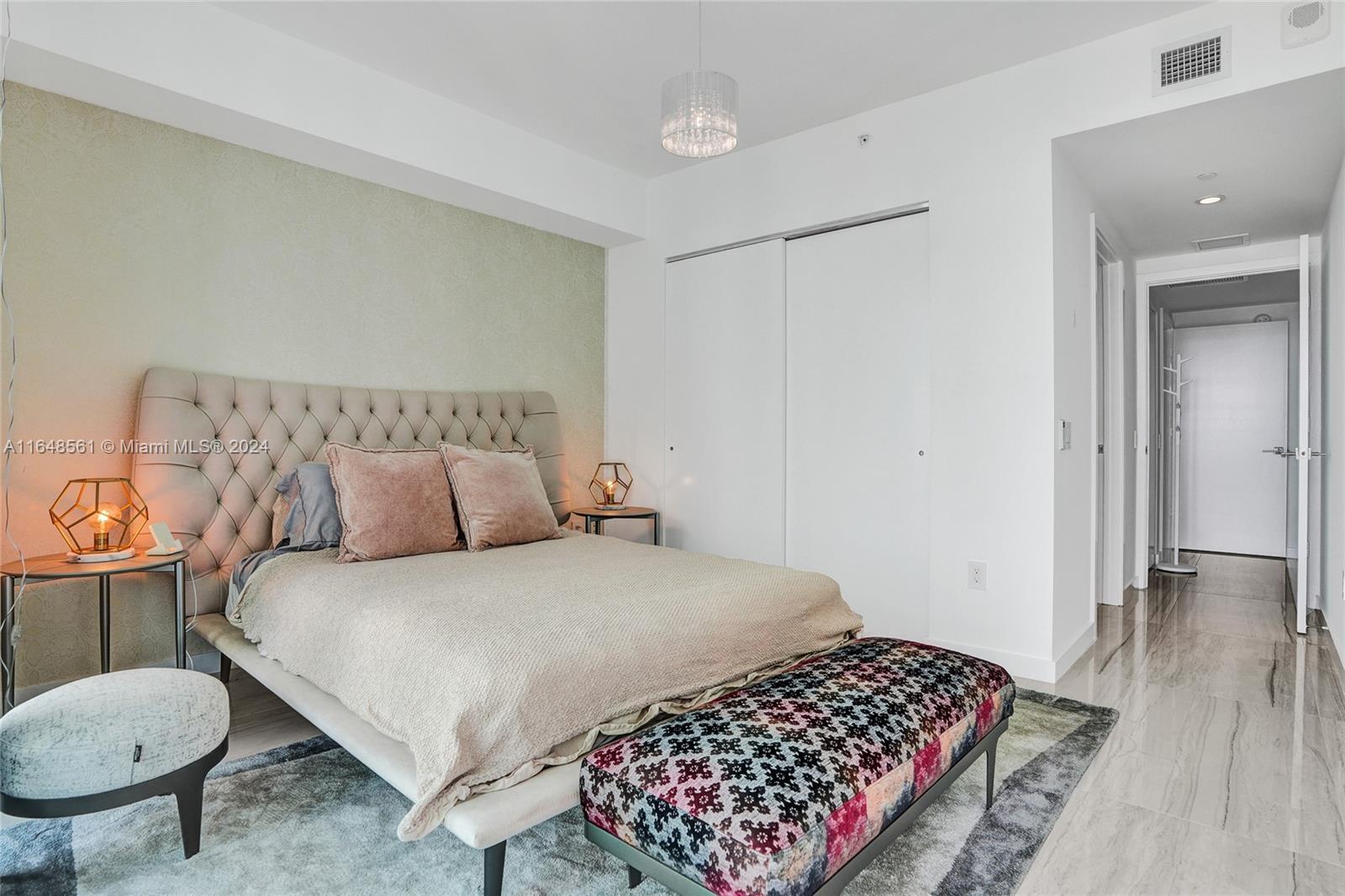 Incredible views on the water. Convenient and smart floorplan with 2 gigantic balconies. Private elevator. Open kitchen. Spacious living-room. Large balcony with water views and dining table and lounge area. Large Master Bedroom. Luminous Master Bathroom. 2 separate sinks. Large equipped Master Closet. Convenient Den next to 2 other bedrooms with their own bathrooms. Half-bathroom for visitors and private foyer. Luxury furniture negotiable. One Paraiso is centrally located with quick access to Wynwood, Design District, Airport, Miami Beach, Downtown and Brickell. All luxury amenities. Ground level adult pool, 2 pools, hot pools, cabanas, 2 tennis courts and BBQ area. Gym, spa, massage rooms, party room, business center, billiard room, screening room, child play room