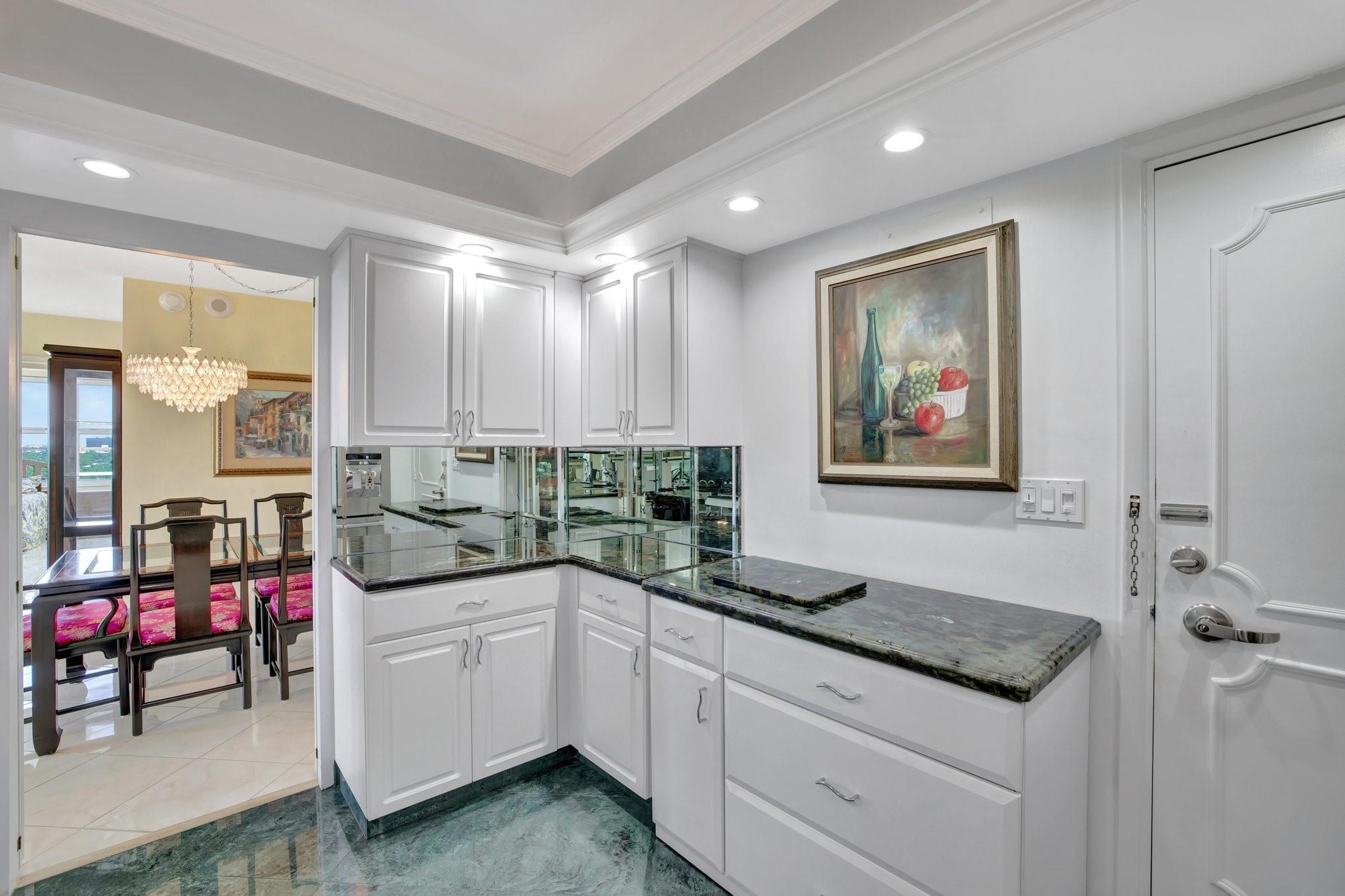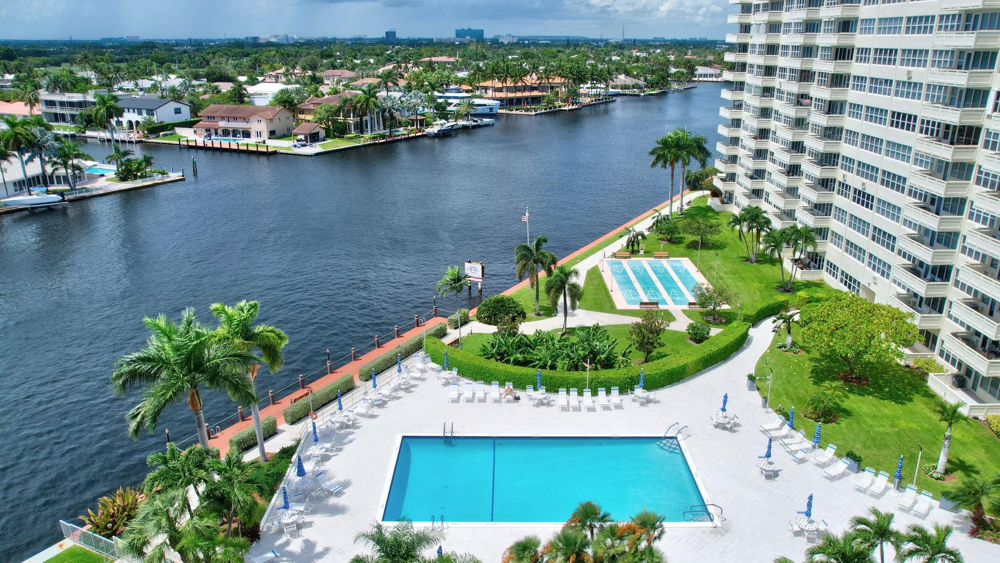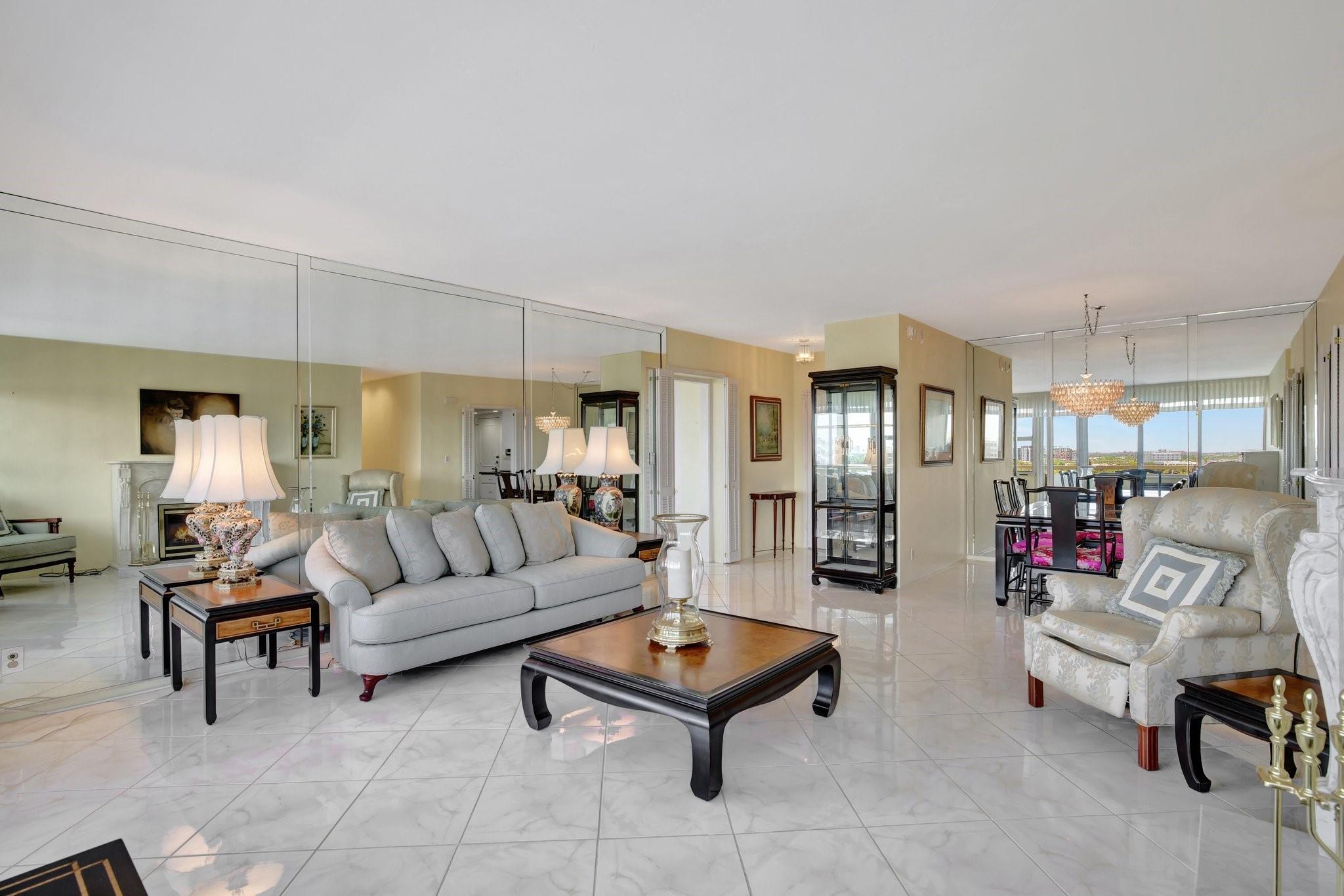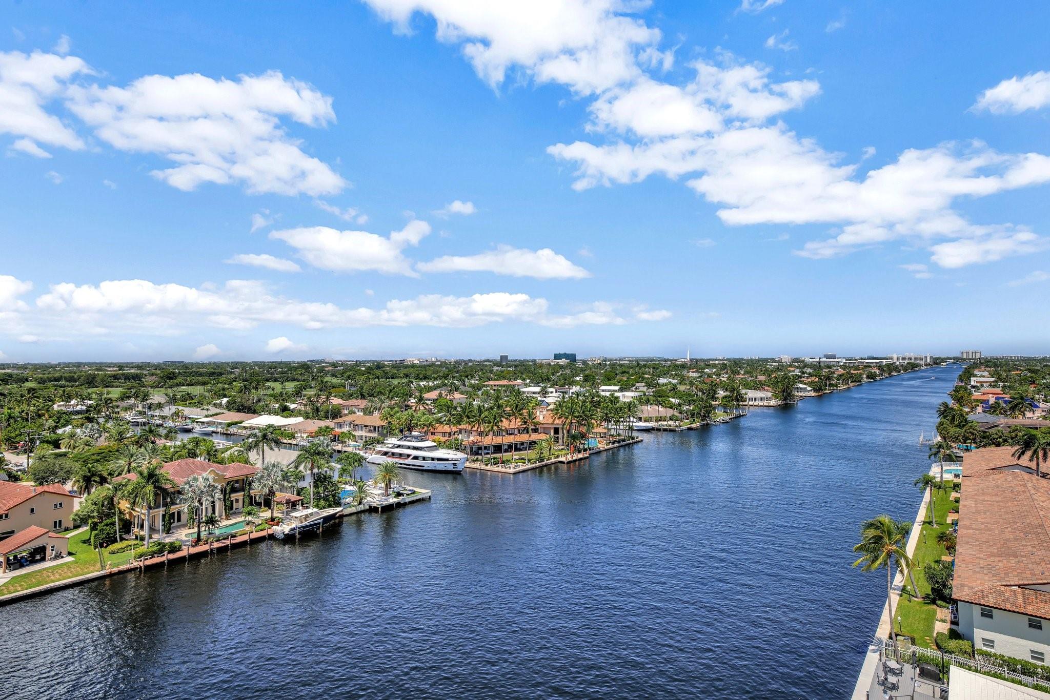 "Top of the Park" location with every window showcasing infinity water views. THE MOST DESIRABLE STACK WITH DIRECT INTRACOASTAL VIEWS. Watch the boats go by from this 3 bedroom corner residence. Verde butterfly granite kitchen. Waterford Crystal Chandelier dining room. Electric fireplace in living room. Large ceramic tile floors thoroughout. Master bedroom with ensuite bath. Walk-in closets. Building completed their 40 year certification. Full amenity building with a beautiful lobby, security guards 24/7, heated pool directly on the Intracoastal, fitness center, social activities, card and game rooms. Surrounded by restaurants, retail, golf, boating, entertainment venues. 55+ community. Loans allowed with 50% down. No rentals.