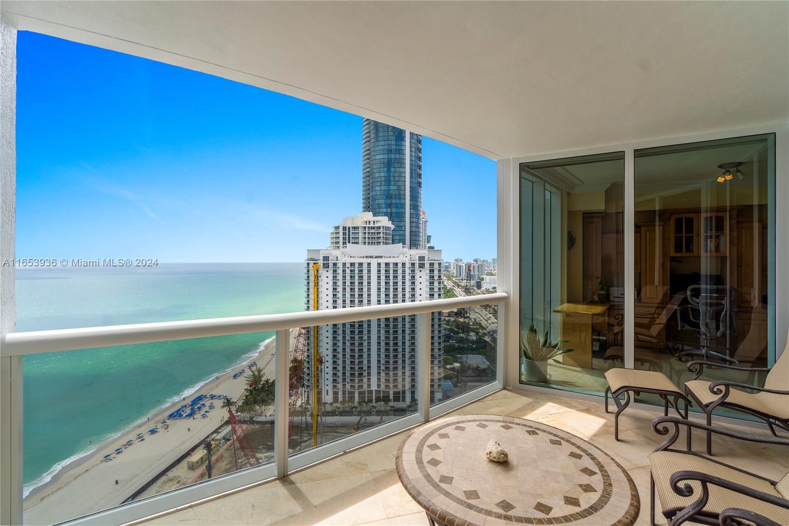 SENSATIONAL GORGEOUS 2BD+DEN/2.5 BATHS HIGH FLOOR UNIT WITH BEAUTIFUL OCEAN, INTRACOASTAL, CITY VIEWS. ELEVATOR TAKES YOU TO YOUR OWN PRIVATE FOYER ENTRANCE. UNIT IS FLOW THROUGH W/TWO HUGE EAST/WEST TERRACES. FORMAL DINING AREA, SEPARATE BEDROOMS, DEN CAN BE EASILY CONVERTED INTO A 3RD BEDROOM,BIG BREAKFAST AREA,TOP OF THE LINE KITCHEN WITH STAINLESS STEEL APPLIANCES, GRANITE COUNTERS.MARBLE FLOORS THROUGHOUT. SEPARATE LAUNDRY ROOM. SUPER LUXURY OCEANFRONT BUILDING OFFERING POOL, ROOF JACUZZI, BISTRO, TENNIS, SPA, FITNESS CENTER, BEACH & POOL SERVICES, VALET, CONCIERGE AND 24H. SECURITY. THIS IS A PERFECTION!