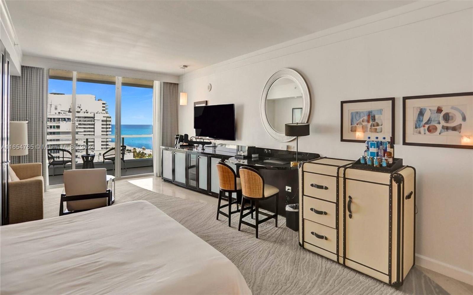 Enjoy unparalleled luxury resort living at the Fontainebleau Miami Beach in this spacious junior suite, located near the top of the prestigious Sorrento Tower on the 17th floor. Offering sweeping views of the Atlantic Ocean and hotel pool, this fully furnished unit features a king-size bed, sofa bed, kitchenette, and a large balcony. Indulge in 5-star amenities like multiple pools, a world-class spa, fitness center, gourmet restaurants, and vibrant nightlife. With white-glove service and valet parking included, this suite is also a prime investment opportunity through the hotel rental program.