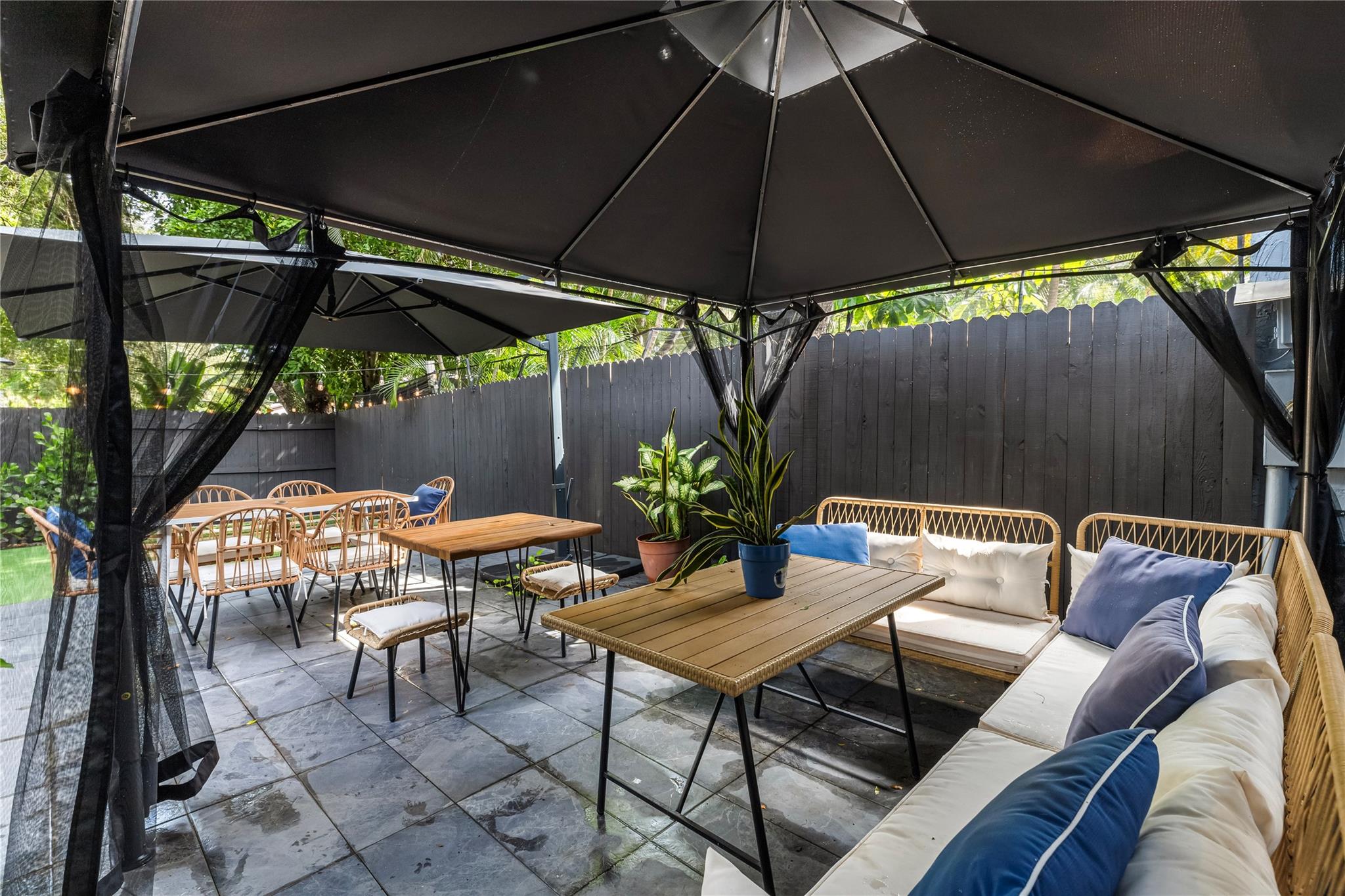 Stunning two story loft nestled in tall oak trees of Palm Aire Village with abundant space. This updated home features a two month old roof, vaulted ceilings, and a modern kitchen with waterfall quartz island, custom cabinets, and sleek black appliances. Enjoy upgraded bathrooms with glass shower enclosures and custom vanities. Two split bedroom floor plan offer walk in closets with built ins, and a Florida room serves as a third bedroom. The loft can be used as a home office or a fourth room. Outdoors, there's a brick paved driveway for three cars and a tranquil backyard with two covered seating areas, a grill, and a fire pit. Perfect for relaxation and entertaining.